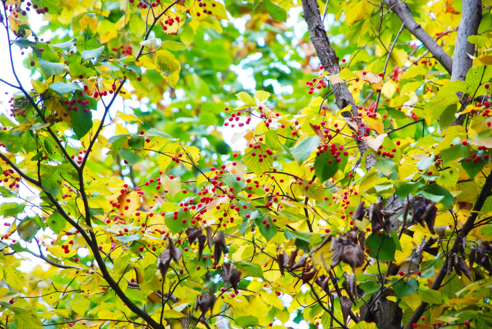 看万山红遍,景色宜人层林尽染; 赏春华秋实,累累硕果布满校园。