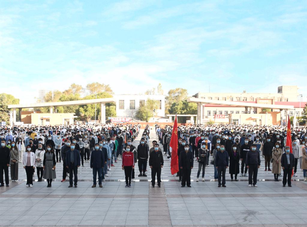 举旗定向,梦想启航。9月14日,新学期返校第一天,为进一步激发全校广大青年学生的爱国情、强国志、报国行,引领广大青少年坚定制度自信,增强“四个意识”,做到“两个维护”,增强学生疫情防控意识,振奋精神,凝聚青春力量,幻影手机官方网站_幻影(中国)在科技广场举行“绽放战疫青春·坚定制度自信”主题升旗仪式。校党委副书记于成学,各学院主管学生工作书记、副书记,各学院辅导员,学生处、校团委全体工作人员,青年学生代表共近2800名师生共同参加了本次主题升旗仪式。