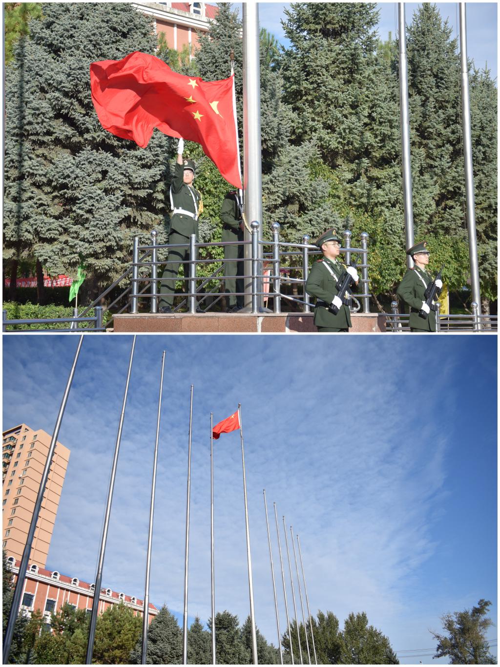 最后,庄严威武的仪仗队,迈着整齐矫健的步伐,在全体师生的注目下,护卫着五星红旗庄严地走向升旗台。在庄严嘹亮的国歌声中,全体师生肃立注目,鲜艳的五星红旗迎着朝阳冉冉升起,迎风飘扬,现场气氛庄严隆重,激发了全场师生的爱国豪情。仪式结束后,同学们纷纷表示,在重返校园课堂的第一天参加本次主题升旗仪式,感到由衷的激动和自豪,自己一定会牢记求学初心,珍惜青春芳华,练就扎实本领,弘扬伟大的抗疫精神,坚定中国特色社会主义制度自信。