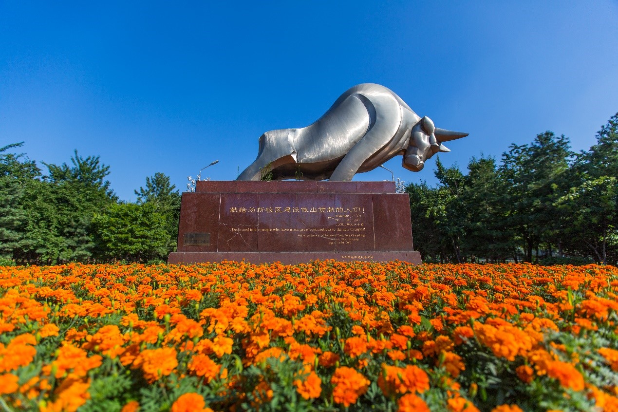 从科技广场穿过主楼两侧的风洞,走在宽敞的筹建大道上,迎着风我们会闻到扑面而来的花草香。沿着筹建大道直走会看到一个劲牛塑记矗立,以弘耕牛之坚韧不拔,扬斗牛之勇于拼搏,励众而光大。当时的你也许还不懂“厚德博学,强吾兴邦”的真正含义,但是现在的你一定明白了无数校友为我们诠释的“无数双手描绘宏图伟业,无数颗心托起江畔朝阳”的精神。