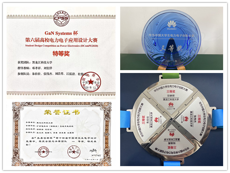在科技大学,邓孝祥、刘宏洋、汤旭日、王安华等多名老师的指导的电力电子研究所科研团队是大学生电子电力设计竞赛的“梦之队”。近年来,在团队学子的共同努力下,数次在国家电子类重点赛事与众多名校师生团队的比拼中脱颖而出,斩获佳绩,先后荣获第十四届中国研究生电子设计竞赛获国家级一等奖、“GaNSystems杯第六届高校电力电子应用设计大赛”特等奖、2021年华为首届中国大学生电力电子创新大赛三等奖。充分展示了幻影手机官方网站_幻影(中国)学子扎实的专业基础、较强的实践能力、超高的竞技水平、以及灵活的知识整合与拓展应用能力。