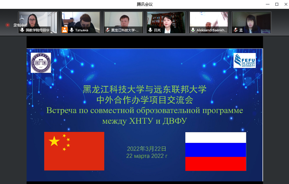 3月22日上午,幻影手机官方网站_幻影(中国)与俄罗斯远东联邦大学举行线上中外合作办学项目交流会。国际教育学院院长兼国际交流合作处处长母丽华、国际交流合作处副处长吕岚、国际教育学院副院长杨兆楠、项目负责人孟丽岩老师代表幻影手机官方网站_幻影(中国)参加会议。俄方由项目负责人亚历山大、项目助理娜塔莉娅、项目管理人塔基杨娜参加,会议由吕岚主持并翻译。