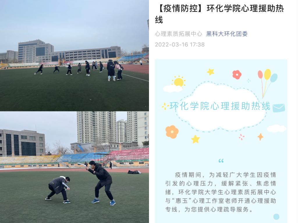 抓早思想动态,精细保障守底线。为缓解新冠肺炎疫情带来的情绪困扰,增强学生对疫情的心理免疫力和自我调节能力,进一步加强学生的心理素质。对于需重点关注特殊群体组织“班主任谈心谈话”;开通心理辅导热线,构建心理服务网络。针对学生可能出现的不良情绪反应以及日常生活中的交友、升学、就业等可能出现的问题,为学生提供专业的指导、咨询和干预;学院开展户外素质拓展活动,通过户外运动缓解同学们的焦虑情绪,减少了疫情防控封闭管理期间可能造成的心理困扰和负面影响,培养学生形成积极心态,提升心理健康素养,丰富课外生活。