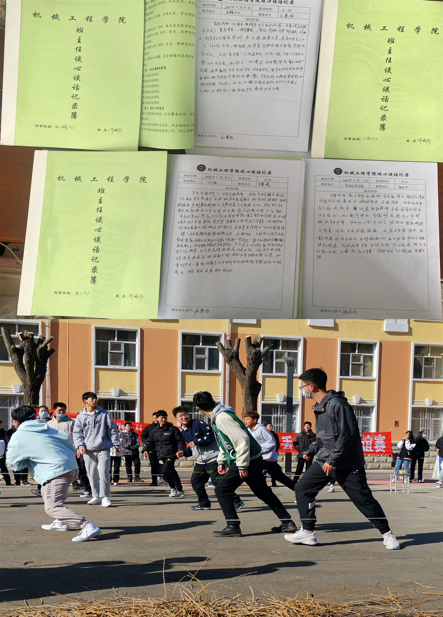 从“小老师”到“大姐姐”。住校后,感觉和学生们在一起的时间变得更多了,每天有三分之二的时间和学生在一起。在“静”下来的校园里,16次穿梭在学生核酸检测的公寓和体育馆之间,数不清多少次奔“跑”在学生外出请假就医和发烧隔离的校医院之间,细数着未完成的工作,每学期开展的“班主任谈心谈话”和“学生心理排查”要加快进度了,每天晚上约3-4名学生来办公室、寝室,谈话场所灵活了许多,学生说:“齐老师,都十点多了,您还不下班吗?我送您回去呀”我笑着说:“时间过得这么快吗?哪天咱们接着聊”。在与学生心与心的交流中,学生理解了老师的要求,老师解决了学生遇到的困惑,我亲切的成为了学生的倾听者和大姐姐。夜晚每当学生路过我的办公室看到灯还亮着,推开门问我:“老师,你吃饭了吗?我去给你买点饭。”这种被人“惦记”的感觉真幸福;现在我有更多的时间与学生一起“丢沙包”“踢毽子”,在欢声笑语中,我和学生成为了好伙伴、好朋友,成为他们的知心大姐姐!