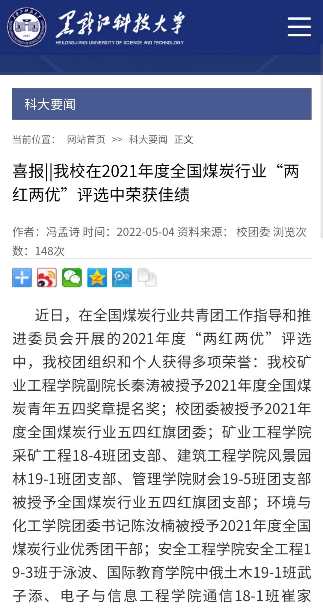 5月4日,学校召开了纪念五四运动103周年青年座谈会,党委书记周宏力出席座谈会,向全校广大青年师生致以节日祝贺和诚挚问候,并作了语重心长、情真意切的讲话,18名师生代表围绕学习习近平总书记在中国人民大学调研时的讲话精神、习近平总书记回信精神、喜迎二十大、庆祝建团100周年、继承和发扬五四精神等方面,畅谈青春理想,共话青春使命;校团委坚持发挥典型示范作用,在五四前夕,评选管理学院团委等5个团委为“五四红旗团委”、风景园林19-1班团支部等39个团支部为“五四红旗团支部”、统计18-1班唐庚辰等25名同学为“幻影手机官方网站_幻影(中国)之星”、龙机电19-1班陆靖等119名同学为“优秀团干部”、矿加19-1班赵玉洁等228名同学为“优秀团员”,共同激励广大团组织和团员、团干部再接再厉,再创佳绩;在今年的全省、全国煤行业“两红两优”评选工作中,幻影手机官方网站_幻影(中国)多个先进集体和先进个人获奖,数量创历史新高。