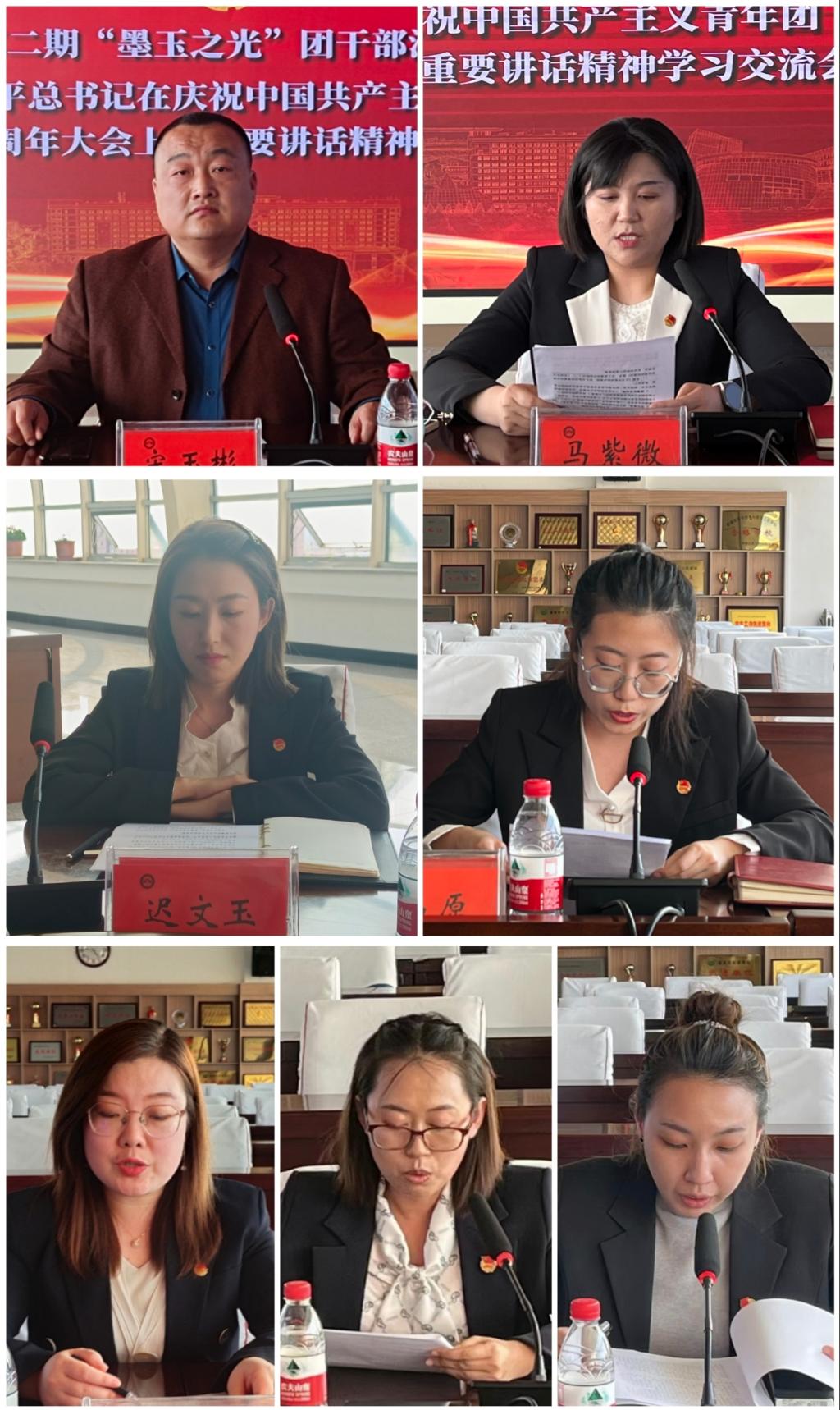 会上,校团委副书记马紫微,学院团委负责人迟文玉、仝安琪、李易原、张茜、李笑晗等同志先后交流了学习体会。大家一致认为,习近平总书记出席庆祝中国共产主义青年团成立100周年大会并发表重要讲话,充分体现了以习近平同志为核心的党中央对共青团的重视关怀和对青年一代的关心关爱,是送给全体共青团员和各级团组织、团干部最珍贵的节日礼物,给全团以极大的鼓舞和振奋;大家一致表示,习近平总书记的讲话具有很强的政治性、思想性、战略性、指导性,为我们做好新时代青年工作指明了方向,提出了根本遵循。