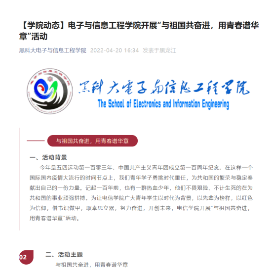 传递正能量,网络思政守正初心。校团委紧紧围绕建团一百周年、2022届毕业生离校等重要时间节点,依托网络思想政治教育阵地,通过官方微信视频号,推出合唱作品《如愿》、《错位时空》、社团成立27周年文艺汇演短片等系列微视频,不断传递青春正能量;管理学院团委推出“团史青年说”系列节目,进一步激发广大团员青少年爱党爱国热情,提升共青团的凝聚力和吸引力;电信学院开展“与祖国共奋进,用青春谱华章”网络活动,让广大青年学生以时代为背景,以先辈为榜样,以红色为信仰,努力奋进;马克思主义学院团委开展“与信仰对话,为青春导航——学习党的青年运动史”分享活动,同学们利用课余生活,分享青年运动史,分享所学、所思、所悟、所感,不断提升思想文化境界。