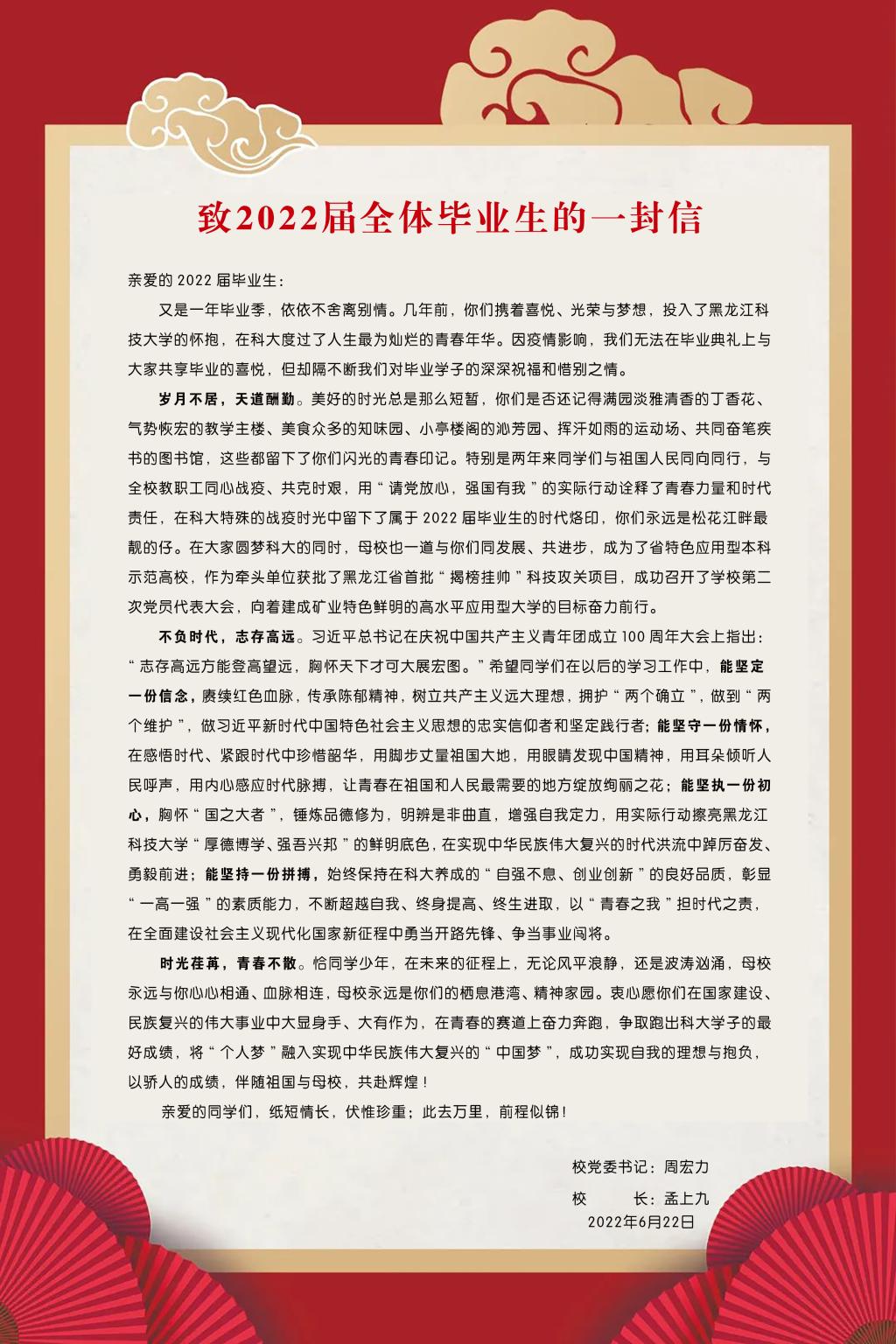 致2022届全体毕业生的一封信