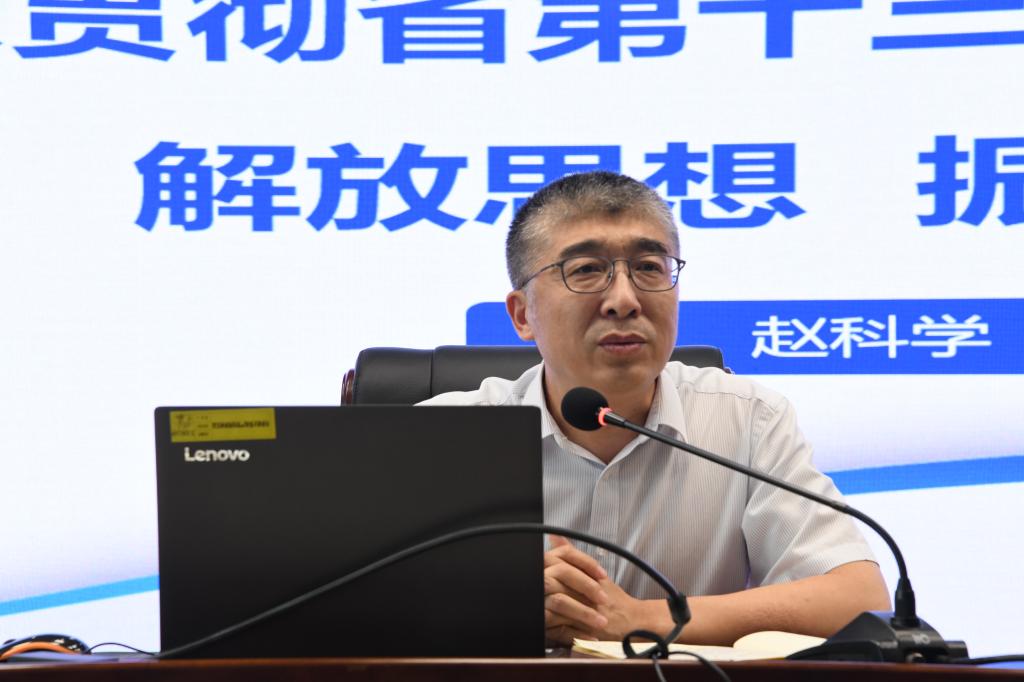 赵科学围绕“解放思想、深化改革,实事求是、创业创新,与时俱进、超前谋划”三个方面进行了深入阐释。他指出,学校发展历史上的每一个大台阶、现实中破解的每一个难题都是解放思想、深化改革的产物,学校广大党员干部必须破除思想禁锢,通过解放思想来实现学校发展的“换道超车”;他强调,要充分认识学校当前发展的优势和劣势、长板和短板,抢抓机遇,积极作为,围绕学校第二次党代会确定的目标、学校“十四五”发展规划的具体任务和当前学校的重点工作,继续保持实事求是、创业创新的工作劲头,创优争先;他要求,全校年轻干部要有机遇意识,关注“时与势”;有市场意识,关注“左与右”;有创新意识,关注“前与后”;有服务意识,关注“上与下”。