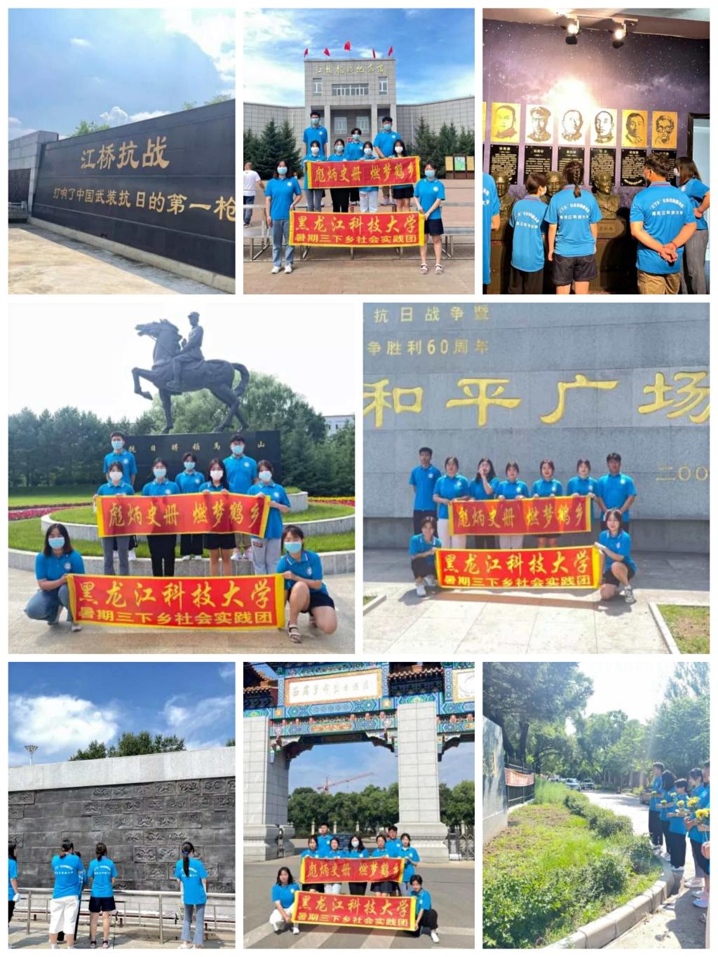 7月1-3日,幻影手机官方网站_幻影(中国)青年志愿者协会组建的“彪炳史册 燃梦鹤乡”党史学习教育社会实践团走进齐齐哈尔市开展社会实践活动。实践团观摩了齐齐哈尔江桥抗战纪念馆、和平广场抗战胜利纪念碑,线上学习了3005次列车和第一重型机械厂的英雄故事,通过观摩与学习深切感受了革命先烈为抵抗侵略抛头颅、洒热血的英雄壮举,深刻体会了敢于突破、敢于创新,大力弘扬和践行“工匠精神”,启示队员们新时代作为奋发向上的青年,当养浩然正气,携凌云壮志,赴星河之约,为实现中华民族的伟大复兴贡献应有之力,让青春之花绽放在祖国和人民最需要的地方。