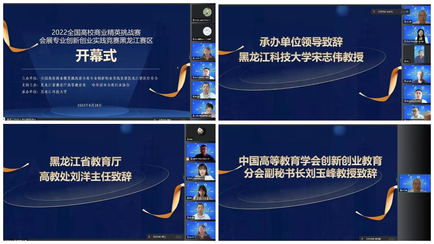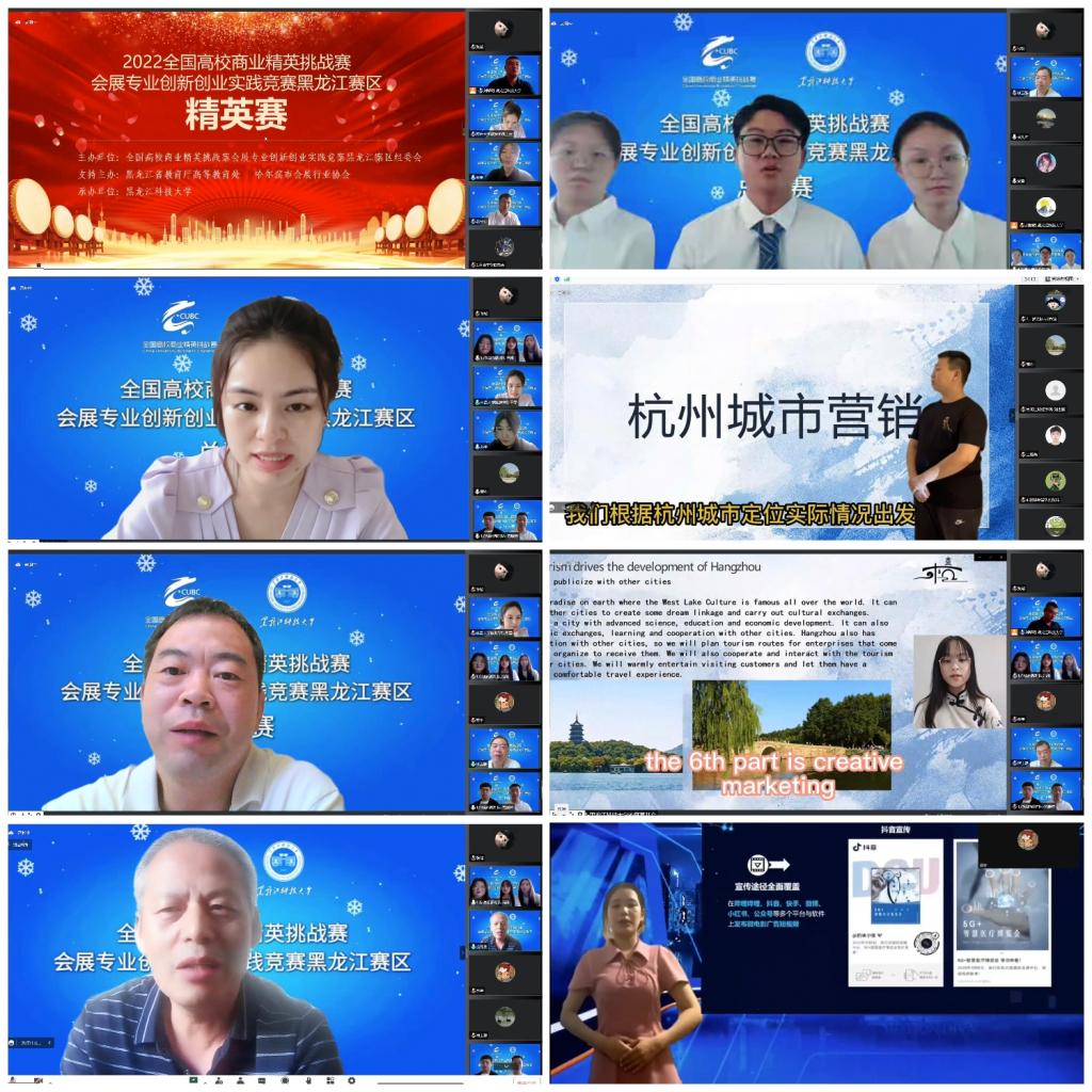 由于疫情防控工作的需要,本届黑龙江赛区总决赛采用线上方式组织评审和答辩。本次大赛设置本两个组别6个赛项,进入总决赛的团队提交了项目策划书、项目介绍视频和项目答辩PPT。赛项重在考察参赛团队会展项目立项分析、执行计划、营销计划、财务预算等方面实施的可行性、可持续性,以及方案构思的创新创意性和整体性。检验参赛学生应变能力以及分析和动手解决问题的能力,培养学生团队协作精神。