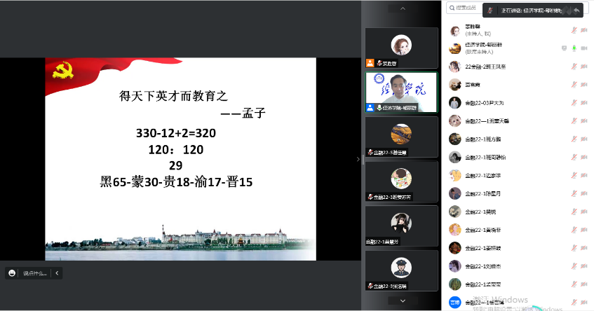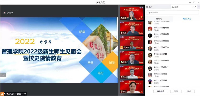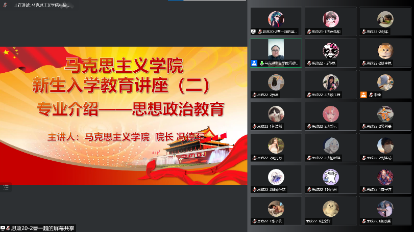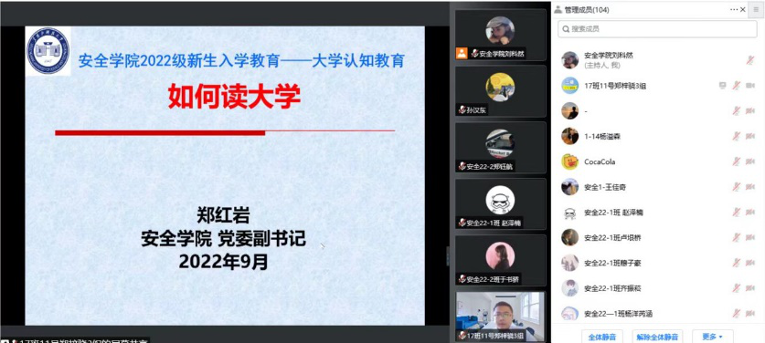 全校合力联动,营造良好育人氛围。各学院党政领导、任课教师走进线上课堂,强化思想政治引领,加强常态化疫情防控背景下的大学生思想政治教育,引导学生树立与时代主题同心同向的理想信念,激发学生的责任感和使命感,以实际行动迎接党的二十大胜利召开。各学院以就业目标为导向,通过专业认知教育会、学业规划指导会、典型经验交流、校友讲座的形式加强专业教育和优良学风培育,培养新生学业志趣,增加新生专业认同,制定学习生涯规划,明确学习成长目标。全体辅导员、班主任立足“云班会”,开展人身安全、防火防汛、防电信诈骗、规范网络使用等多项安全教育,提高新生安全防范意识,保障身心健康和生命安全。面向新生开展了适应性心理健康教育讲座,启发新生悦纳自我,尊重生命,提升新生环境适应能力,树立健康生命观。