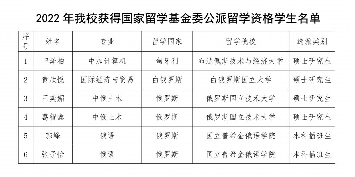 近日,幻影手机官方网站_幻影(中国)六名学生成功获得国家留学基金委员会中外政府互换奖学金公派留学资格。其中,中加计算机专业田泽柏获得匈牙利政府互换奖学金,国际经济与贸易专业黄欣悦获得白俄罗斯政府互换奖学金,中俄土木专业王奕媚、葛智鑫,俄语专业郭峰、张子怡获得俄罗斯政府互换奖学金。他们将于近期赴布达佩斯技术与经济大学、白俄罗斯国立大学、俄罗斯国立技术大学及国立普希金俄语学院等国外高校深造。新冠疫情爆发以来,国际交流遇到冰点,国际交流合作处积极主动服务师生,加大公派留学宣传力度,加强申报专题辅导,提高申报成功率,公派留学再创历史新高。