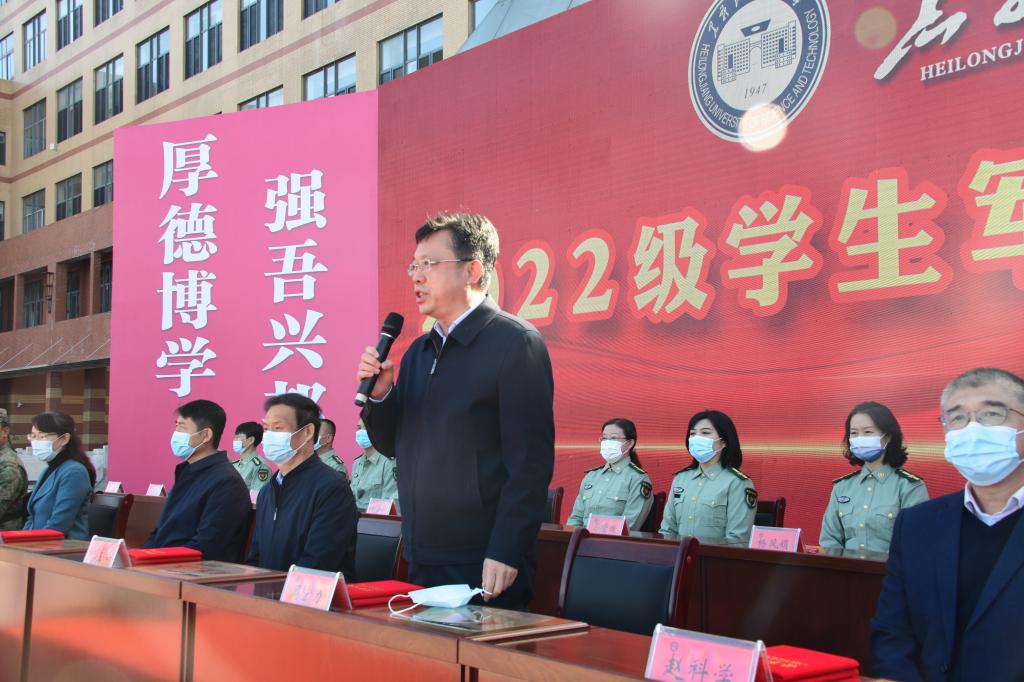 最后,学生处处长、军训旅旅长邬承斌代表2022级学生军训旅作了军训总结,向全体承训教官和所有参训人员表达了感谢和问候,向圆满完成军训任务并取得优异成绩的全体新生表示了祝贺,鼓励全体新生在未来的大学生活中,继承和发扬军人的优秀品质和作风,刻苦钻研、努力拼搏,把自己培养成敢于担当、乐于奉献,追求卓越、德才兼备的新时代大学生。