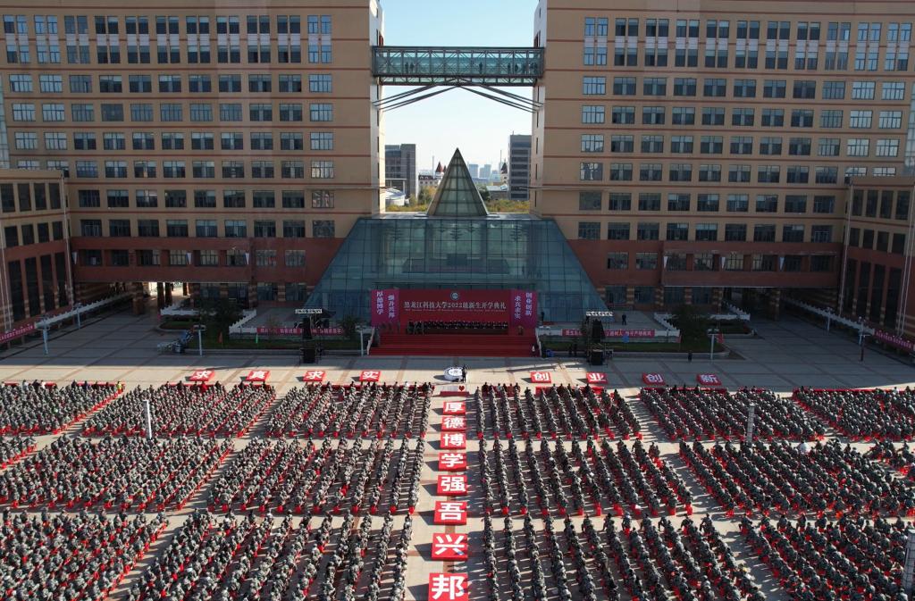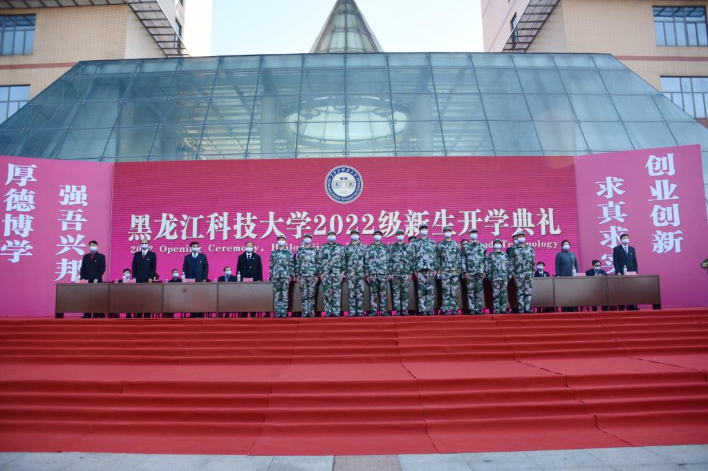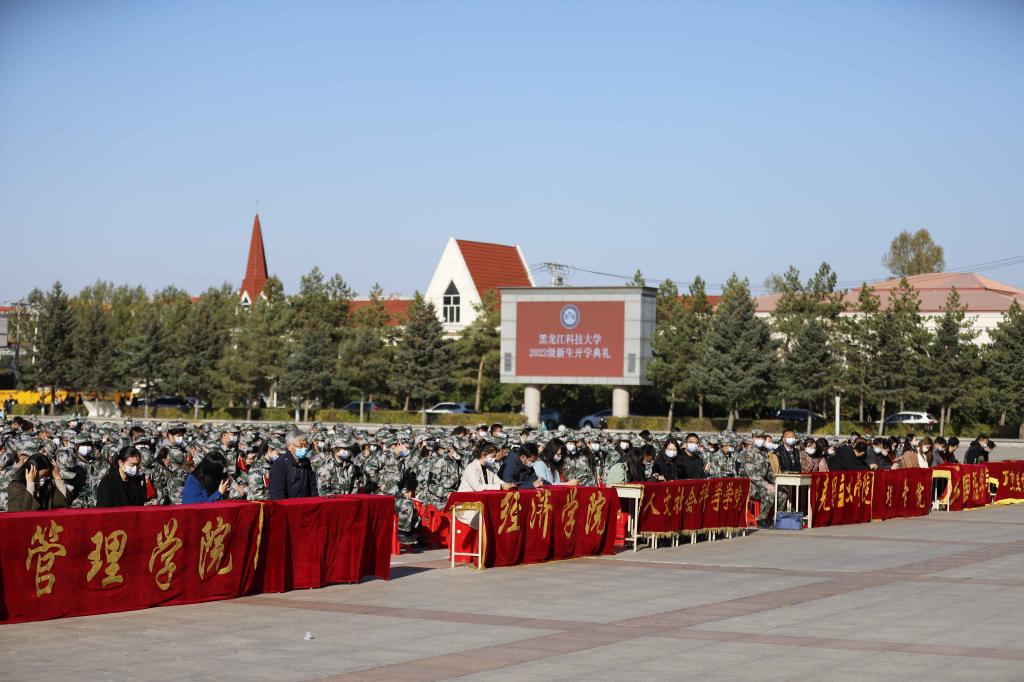 全体新生提前在科技广场就坐,手挥国旗,齐唱《我和我的祖国》,现场气氛热烈。14时,开学典礼正式开始,全场肃立,五星红旗在雄壮的国歌声中冉冉升起。