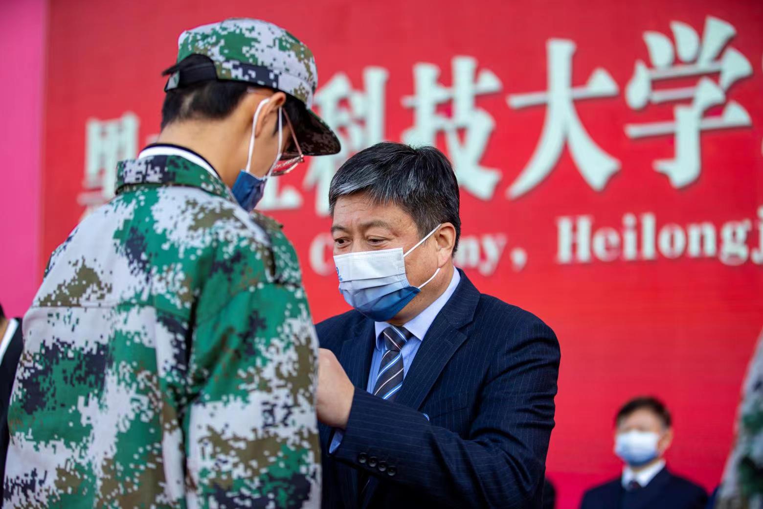 典礼上还举行了新生佩戴校徽仪式,校领导为新生代表佩戴校徽,希望新生们听党话、跟党走,勇担时代重任,不负青春韶华。