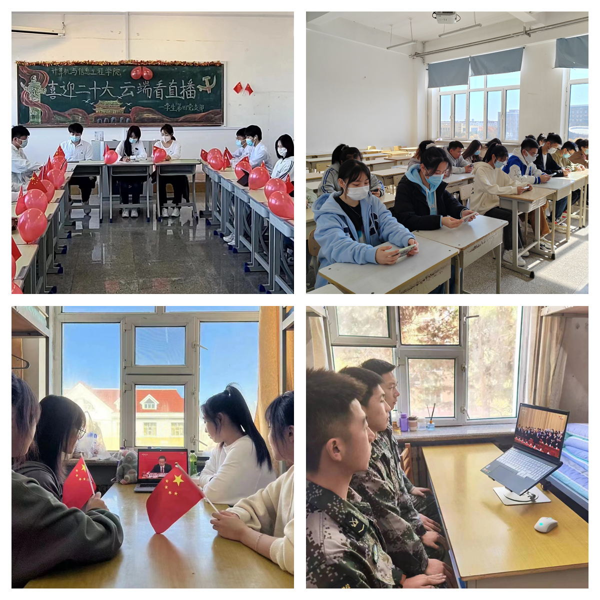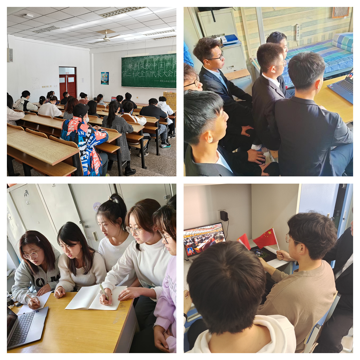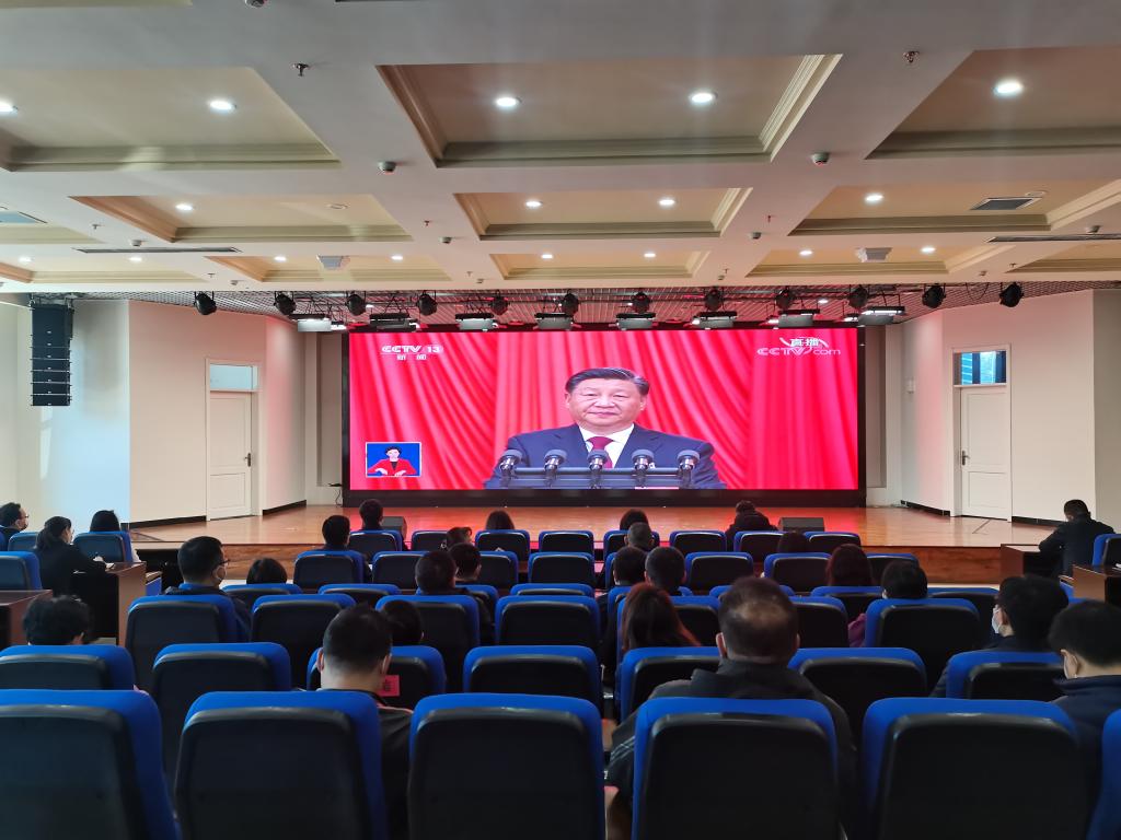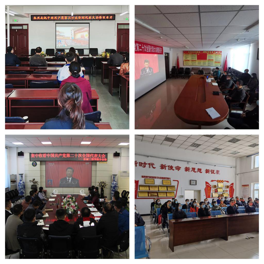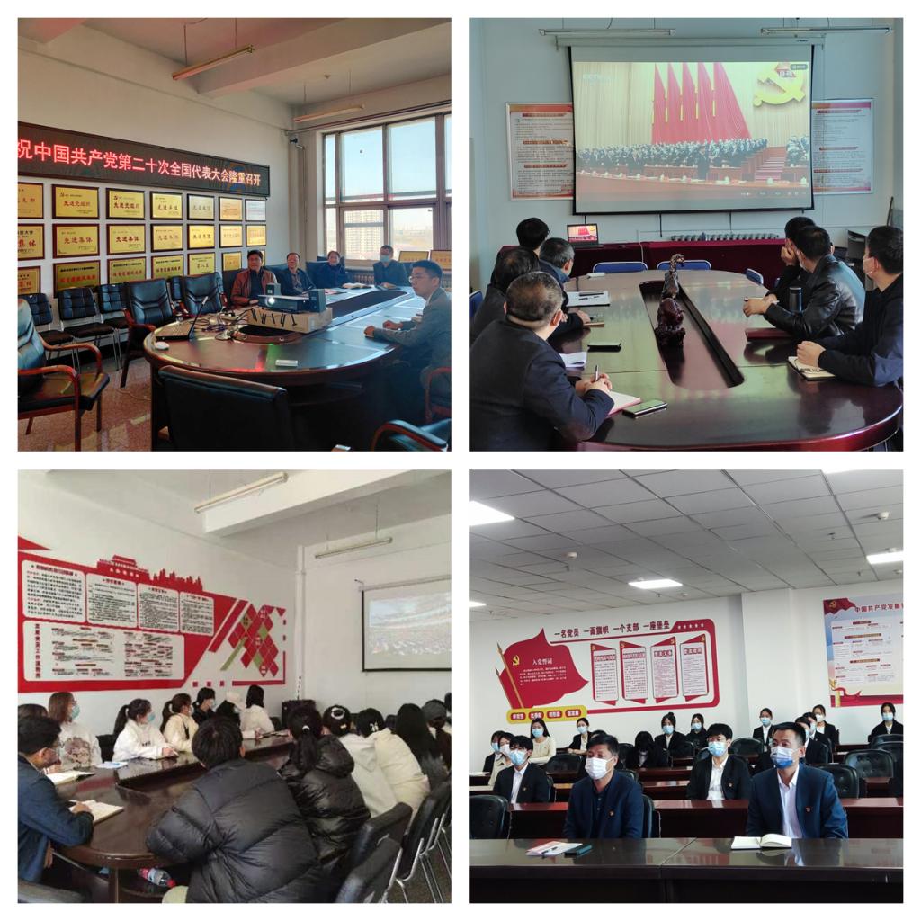 校领导班子成员,机关各单位、评估中心和学术理论研究部负责人在主会场集体观看了开幕会直播。机关各单位科级以上干部、各基层党组织师生员工、民主党派和无党派人士、青年学生骨干分别在各分会场观看直播。与会人员认真听取了习近平总书记代表第十九届中央委员会向大会所作的报告,深入了解报告各部分内容,把握十九大以来建设成就和国家未来发展蓝图,并就报告中的新提法、新思想进行探讨和交流,纷纷表示要深刻认识和把握大会报告的精神实质和丰富内涵,把思想和行动统一到党的二十大精神上来,以报告精神为指引,为建成矿业特色鲜明的高水平应用型大学、全面建设社会主义现代化国家、全面推进中华民族伟大复兴作出应有的贡献!