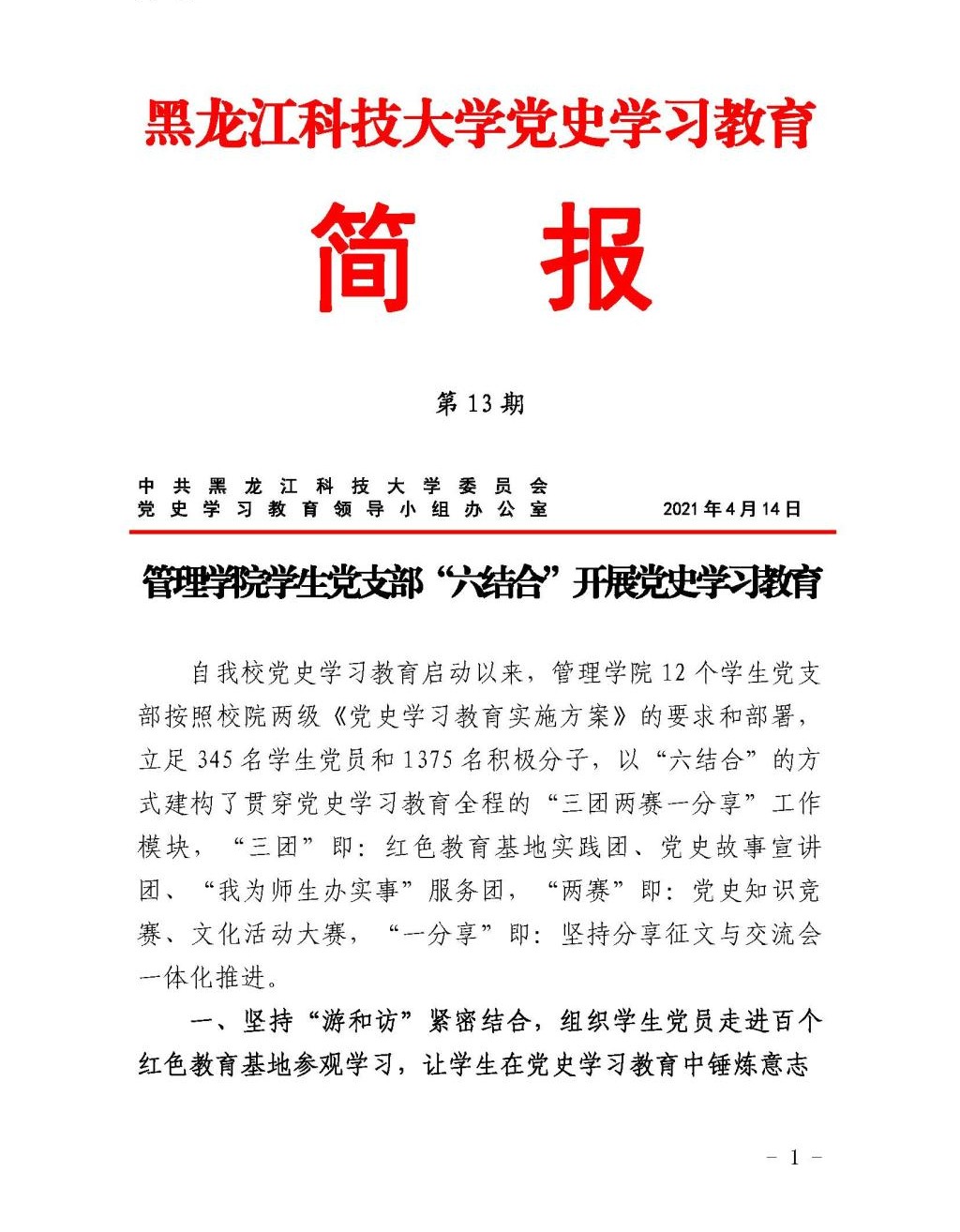 党史学习教育工作简报(第13期)