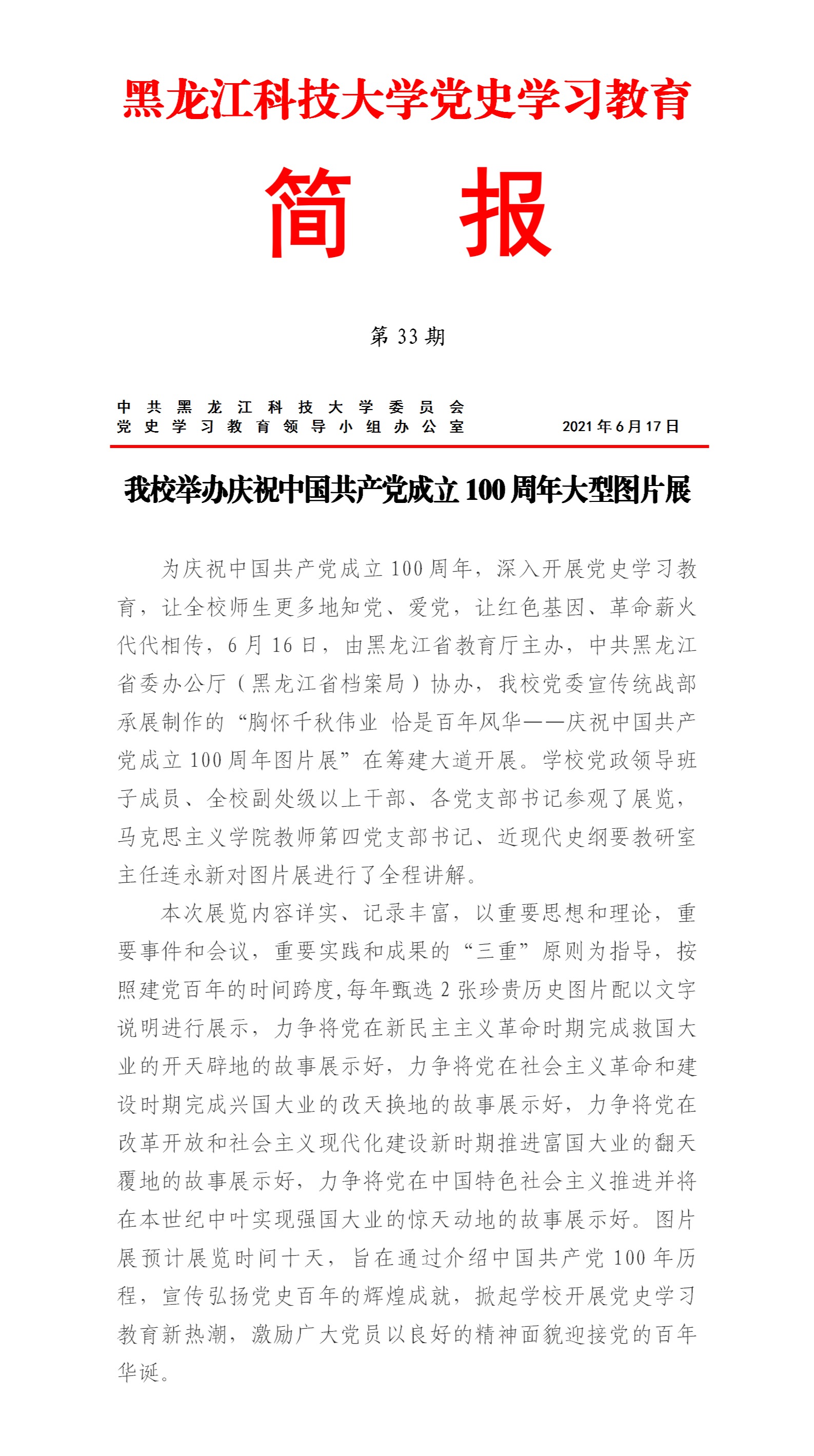 党史学习教育工作简报(第33期)