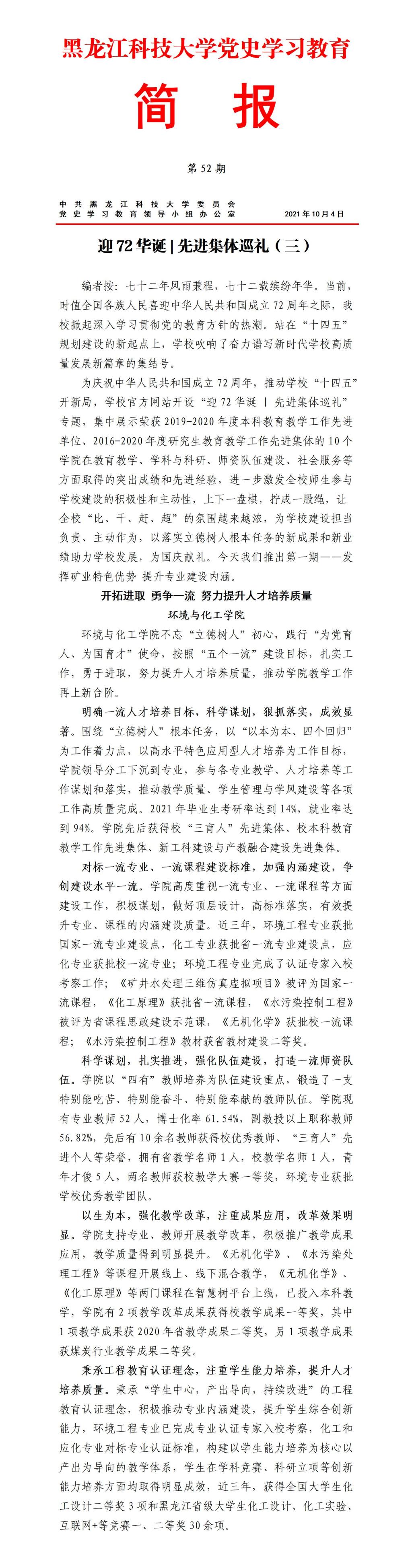 党史学习教育工作简报(第52期)