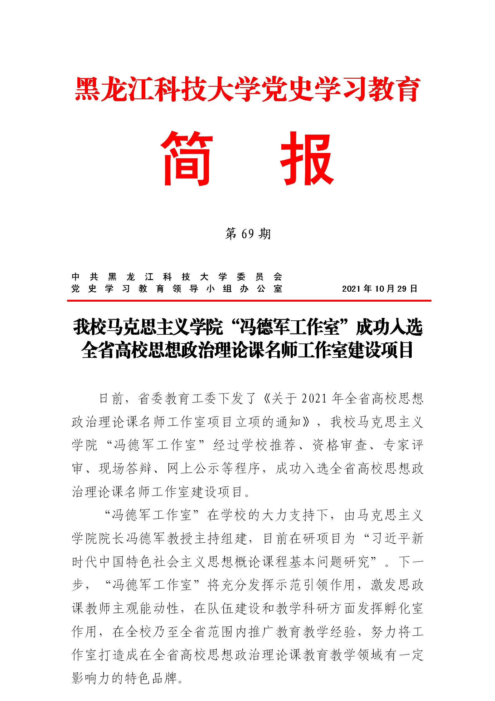 党史学习教育工作简报(第69期)
