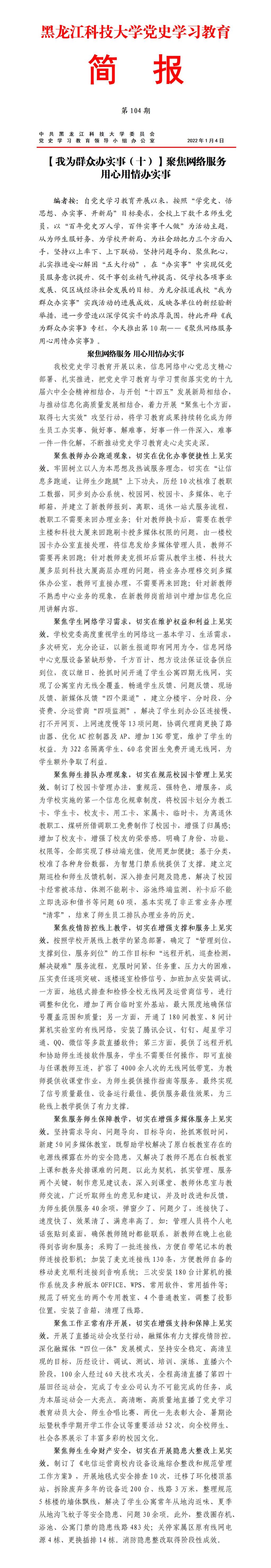 党史学习教育工作简报(第104期)