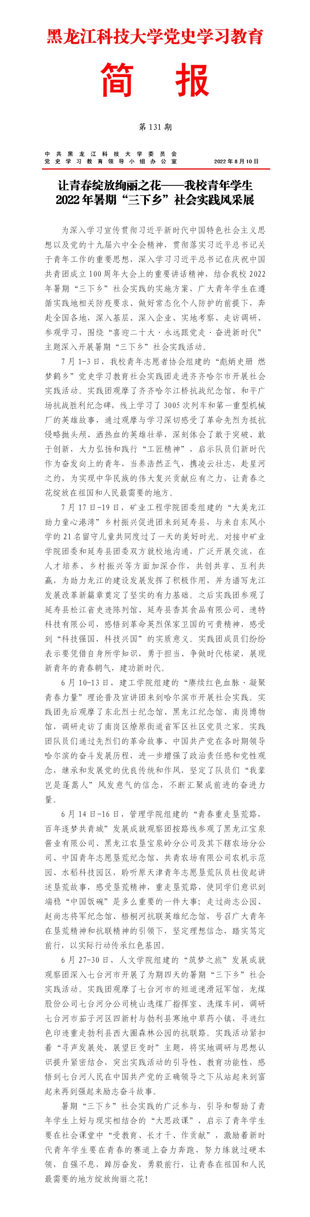 党史学习教育工作简报(第131期)