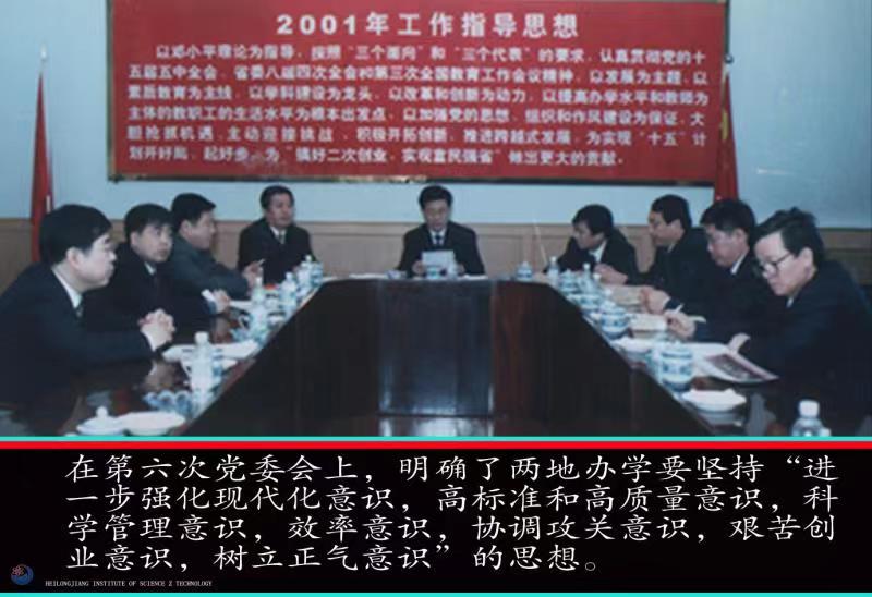 面对新形势、新任务,学校党委按照科学领导、提高执政能力的要求,及时明确两地办学应坚持的原则和工作方式、方法,在人员分散、师资不足的情况下,加强组织协调,保证了教学秩序正常,及时处理解决了在建设、贷款、资产转让、防非典、主体迁移等工作中发生的各种各样的问题;坚持以人为本的思想,不仅联系开发商建设职工住宅,还在职工子女就学、畅通水陆交通等方面做了大量艰苦细致的工作,基本解决了以“三高”为主的教职工配偶的工作问题,实现了鸡西校区水、电、暖的托管,解除了在鸡西生活的老同志的思想顾虑;按照净化、绿化、美化、有文化的要求,深入开展“六防止、三杜绝”活动,基本做到了教职工无怨言、教学质量无下滑、工地无事故、校园无不稳定事件,开创了两地办学的新局面。