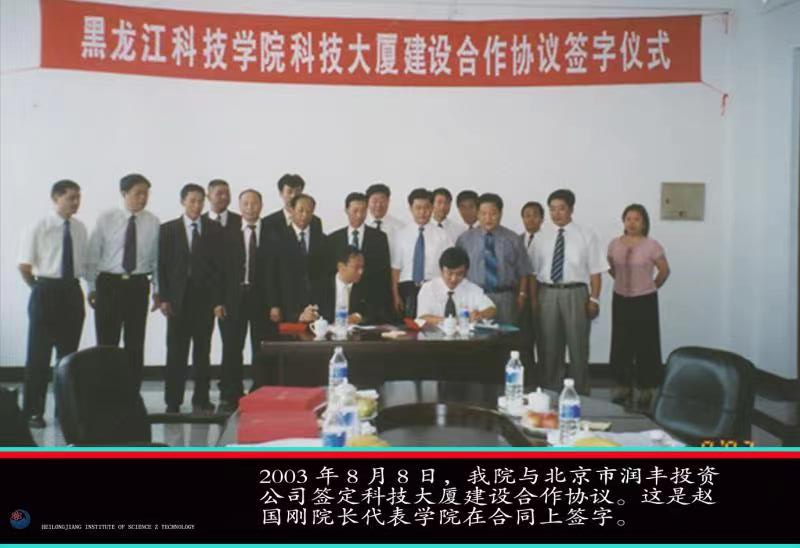 2001年1月18日,一个历史性的时刻正在报业大厦进行,从2000年11月16日起,历经两个多月的艰苦谈判,学校以5400万元的价格,与哈尔滨市轻工局正式签订了整体购买哈尔滨糖厂的合同。也正是从这一刻起,开启了学校办学史上的新篇章。