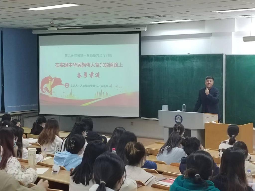 开班仪式上,人文学院党委书记、第九分党校校长陈连军教授作了动员讲话。他指出,举办预备党员培训班是党组织加强对预备党员教育培养的基本要求,是推进党建工作的重要举措,也是加强预备党员党性修养的客观需要。他希望,所有学员要把思想摆进去,严肃认真学,端正态度,严守培训纪律;要把“脑子”摆进去,全面系统学,掌握思想精髓,深化对重大理论创新的理解;要把身子摆进去,转化运用学,在实际行动上中始终发挥先锋模范作用,做到学以修身、学以增智、学用相长。他要求,所有学员要时刻铭记自己的党员身份,端正入党动机,不断深化党员意识,着力加强理论学习,自觉投身实践服务,从而做到理论水平、思想认识与自身能力的全方面提升,以出色的成绩,证明自己无愧于共产党员的光荣称号。