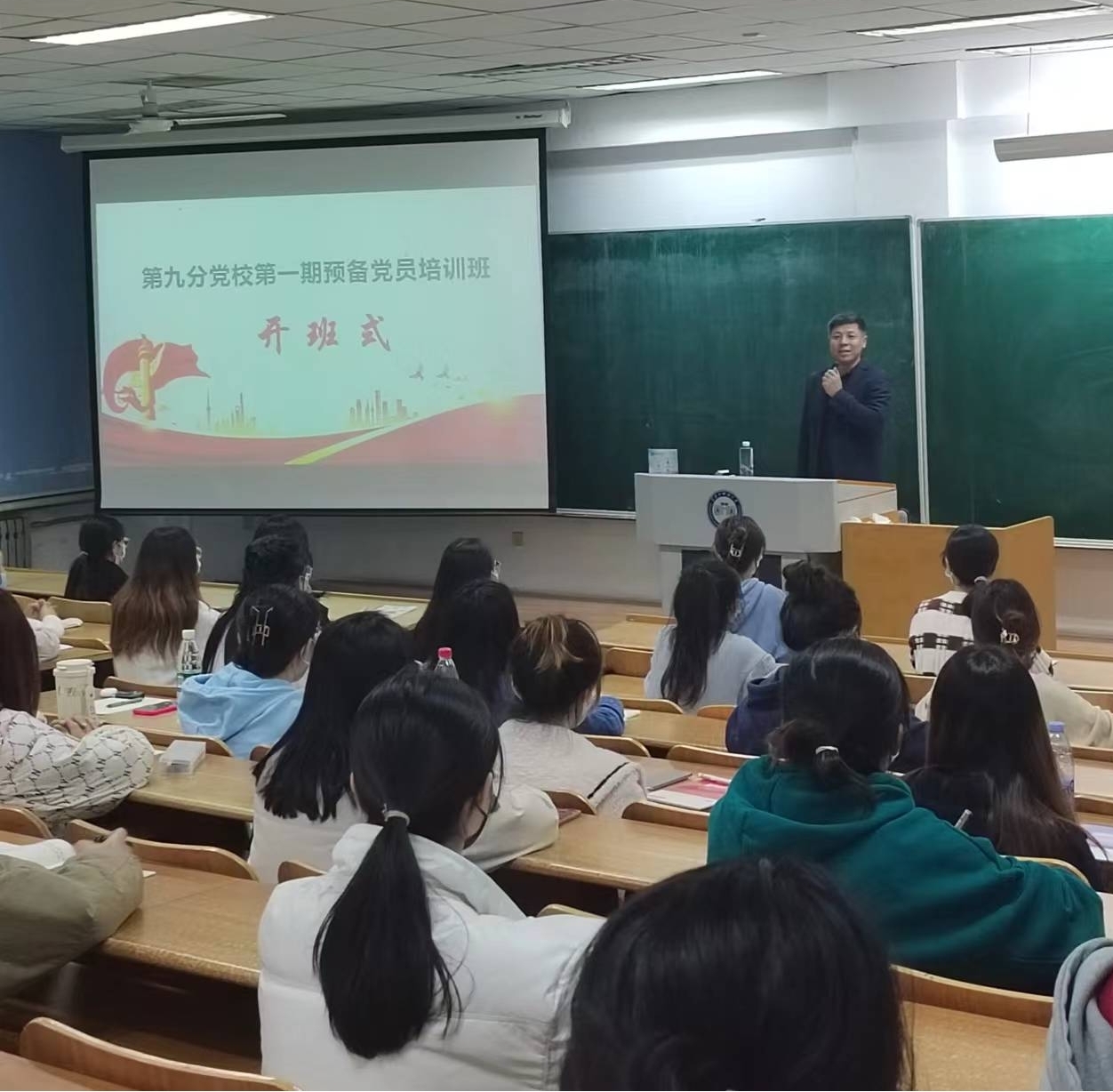 2022年10月28日晚18时,学校党委党校第九分校第1期预备党员培训班在科E401正式开班。人文社会科学学院和外国语学院80名预备党员参加了此次培训。