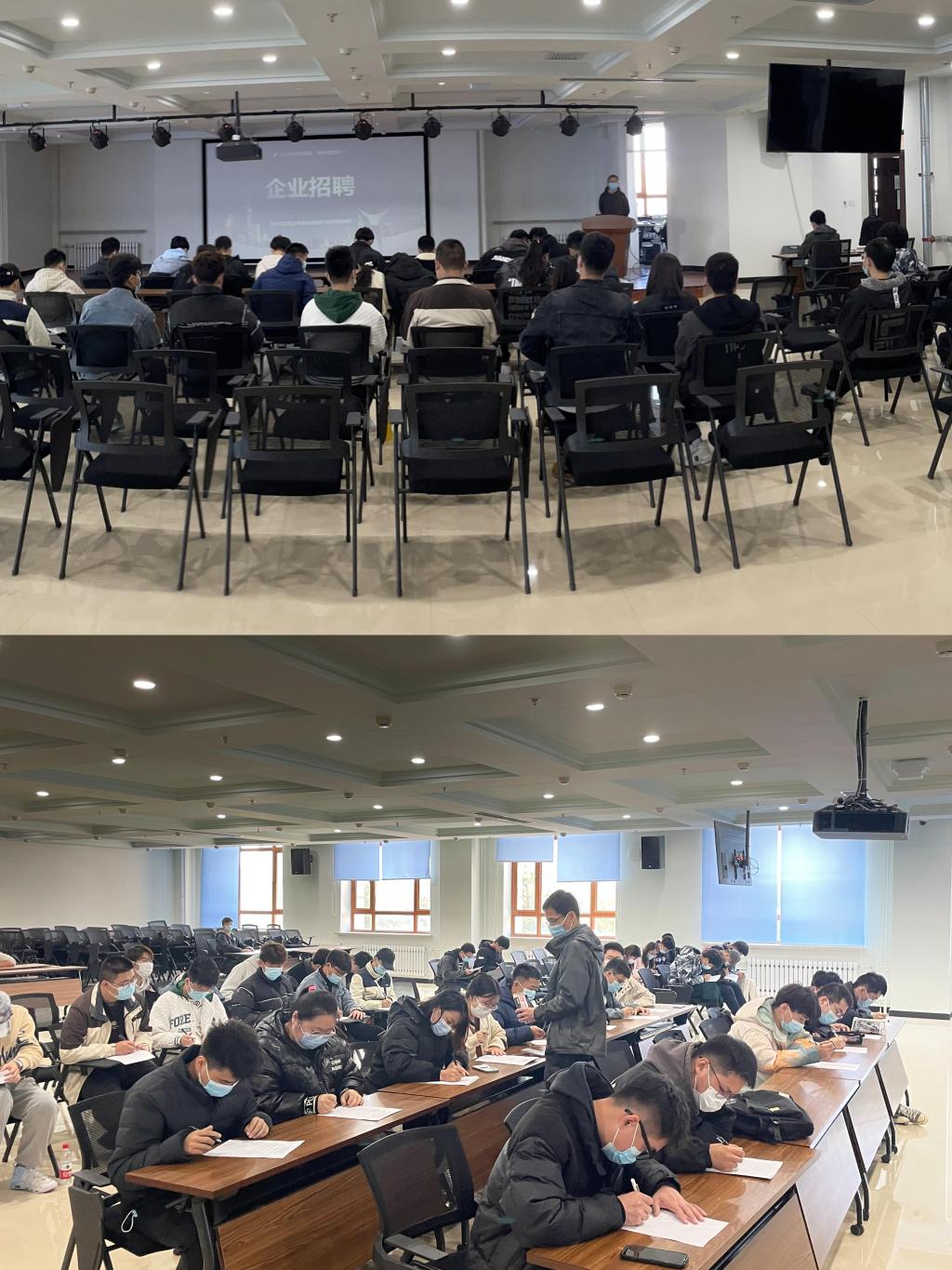 学院党委书记李鹏银、副书记侯树成,到招聘会现场,与用人单位进行了深入交流,详细了解该单位的用人需求,双方初步达成长期合作意项。毕业生辅导员韩大伟、张孟洁及就业工作辅导员陈慧琦,按照疫情防控要求,到现场组织学生分场次有序进入,控制单场次参与宣讲会人数在40人以下,并指导学生与用人单位签约。宣讲会后,辅导员组织有意愿到该企业的30多名学生参加现场笔试。据悉,有10多名学生主动向用人单位投递了个人简历。