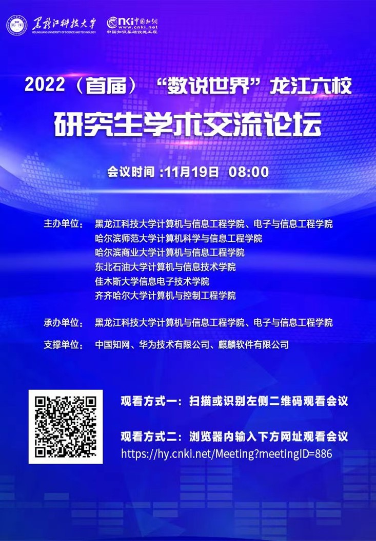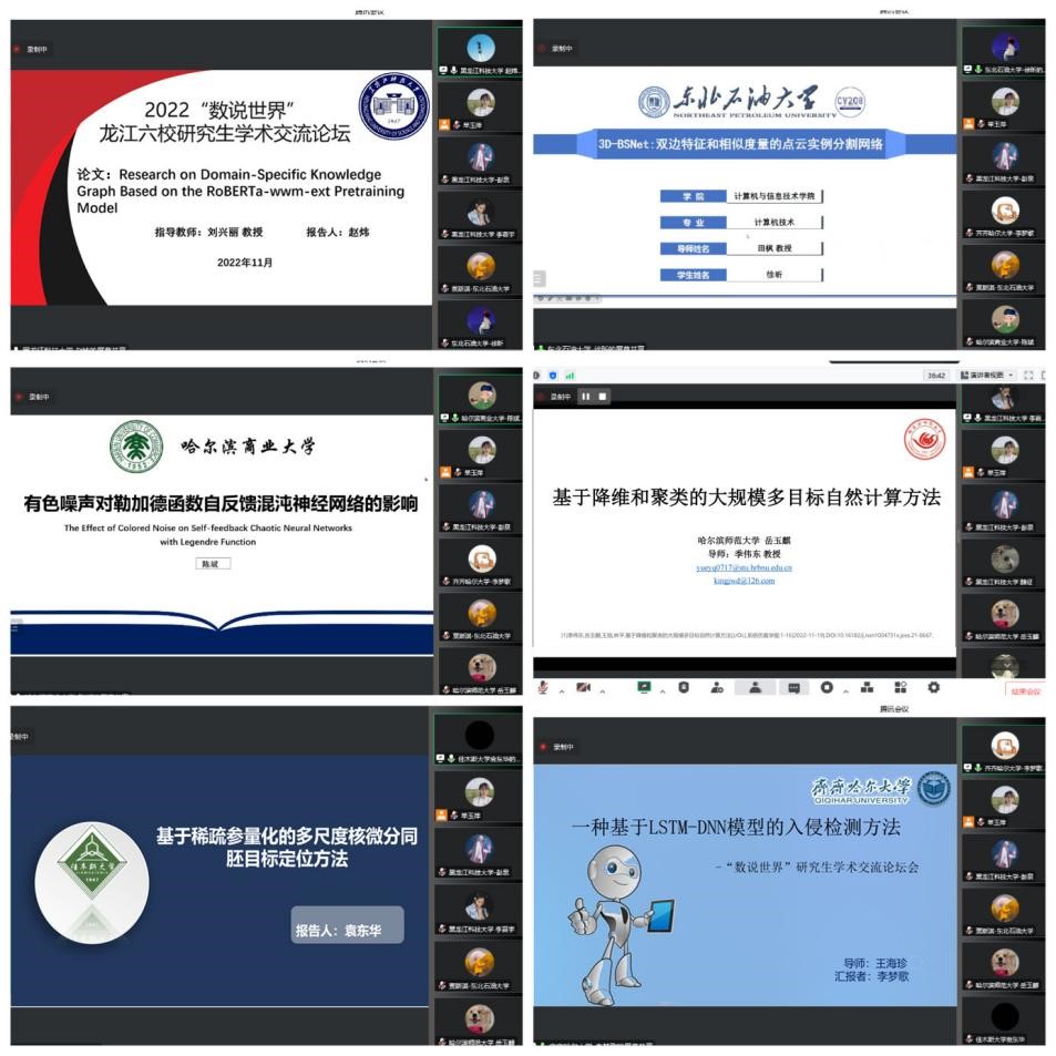 为响应省委、省政府加快“数字龙江”建设,推进黑龙江省数字人才培引的号召,搭建一个面向研究生的集学术观点、学术思想等汇聚交流的平台,11月19日,幻影手机官方网站_幻影(中国)计算机与信息工程学院、电子与信息工程学院联合东北石油大学、哈尔滨师范大学、佳木斯大学、哈尔滨商业大学、齐齐哈尔大学共同举办了2022首届“数说世界”龙江六校研究生学术交流论坛。计算机与信息工程学院院长赵金宪、副院长刘兴丽,电子与信息工程学院院长杨庆江、副院长刘付刚,以及其他五校的相关学院领导和研究生导师参加会议,幻影手机官方网站_幻影(中国)研究生学院副院长于凤云应邀参加了本次会议。论坛由刘兴丽主持,交流论坛采取线上直播方式进行。