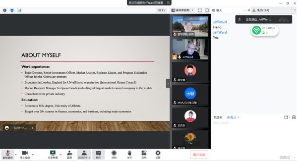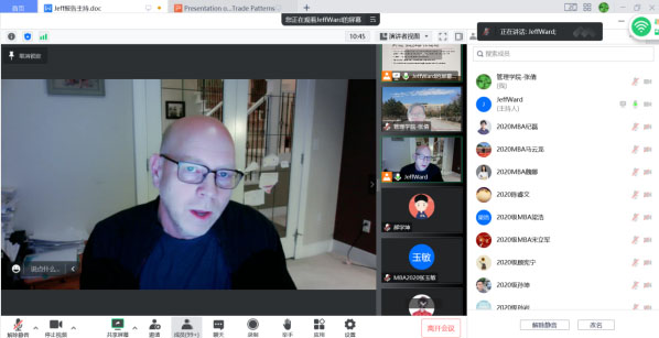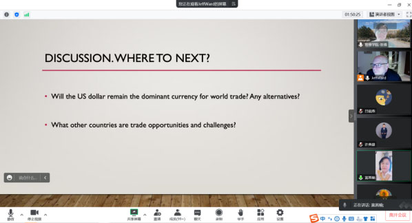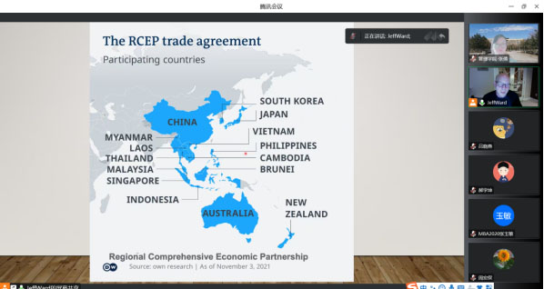 12月20日,管理学院、学科建设办、国际交流处、科技处联合举办“管理学院2022年专场学术报告会”,加拿大学者JEFF WARD通过“腾讯会议”网络平台做了题为“SHIFTING WORLD TRADE PATTERNS (IN THE CONTEXT OF CHINA)”的学术报告。报告会由管理学院副院长张倩主持,共有200余名教师和学生参加了本次国际学术交流活动。