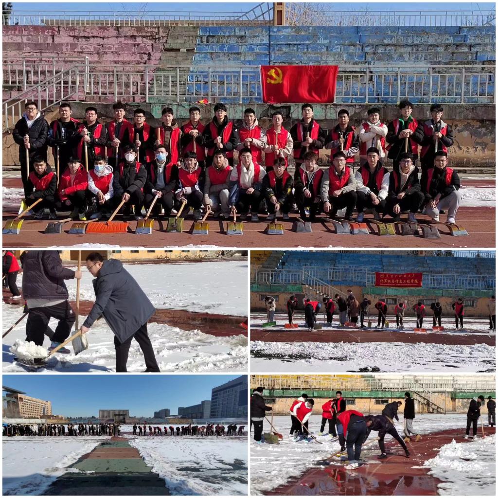 “白色教育”,志愿清冰除雪。为深入践行“五育并举”,发挥劳动育人的作用,学院在初春大雪过后,组织广大团员青年开展沉浸式劳动教育,为校园清冰除雪。学院组建“青年扫雪突击队”、“学生党员志愿服务队”深入扫雪分担区与田径场,利用课余时间将积雪清理干净,用汗水为美丽校园贡献了自己的力量,在无私奉献中更加崇尚劳动、尊重劳动,懂得劳动最伟大、最美丽的道理。