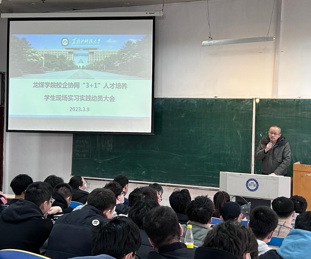 为促进顶岗实习工作的顺利开展,强化实习管理,明确实习任务,确保实习质量,3月9日上午,龙煤学院召开校企协同“3+1”人才培养学生实习实践动员大会。学院院长肖福坤,副院长秦涛、商宇航、张永利,相关专业主任、指导教师、辅导员,龙煤学院2019级采矿工程、矿物加工工程、资源勘查工程、测绘工程、机械电子工程专业学生,2022级安全工程专业学生参加了会议,会议由副院长秦涛主持。
