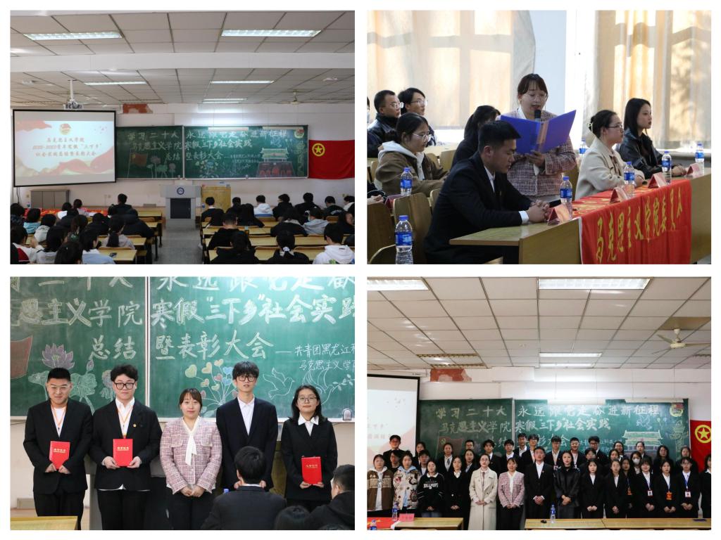 播撒志愿火种,砥砺奋进青春。为及时总结社会实践优秀成果,表彰先进典型,马克思主义学院召开2022-2023学年寒假“三下乡”社会实践总结暨表彰大会。引导我院青年学生以更加饱满的精神状态投入到社会实践与志愿服务当中去,鼓励青年学生在社会实践中深入了解国情、社情、民情,真正做到“受教育、长才干、作贡献”,坚定理想信念,锤炼意志品质。