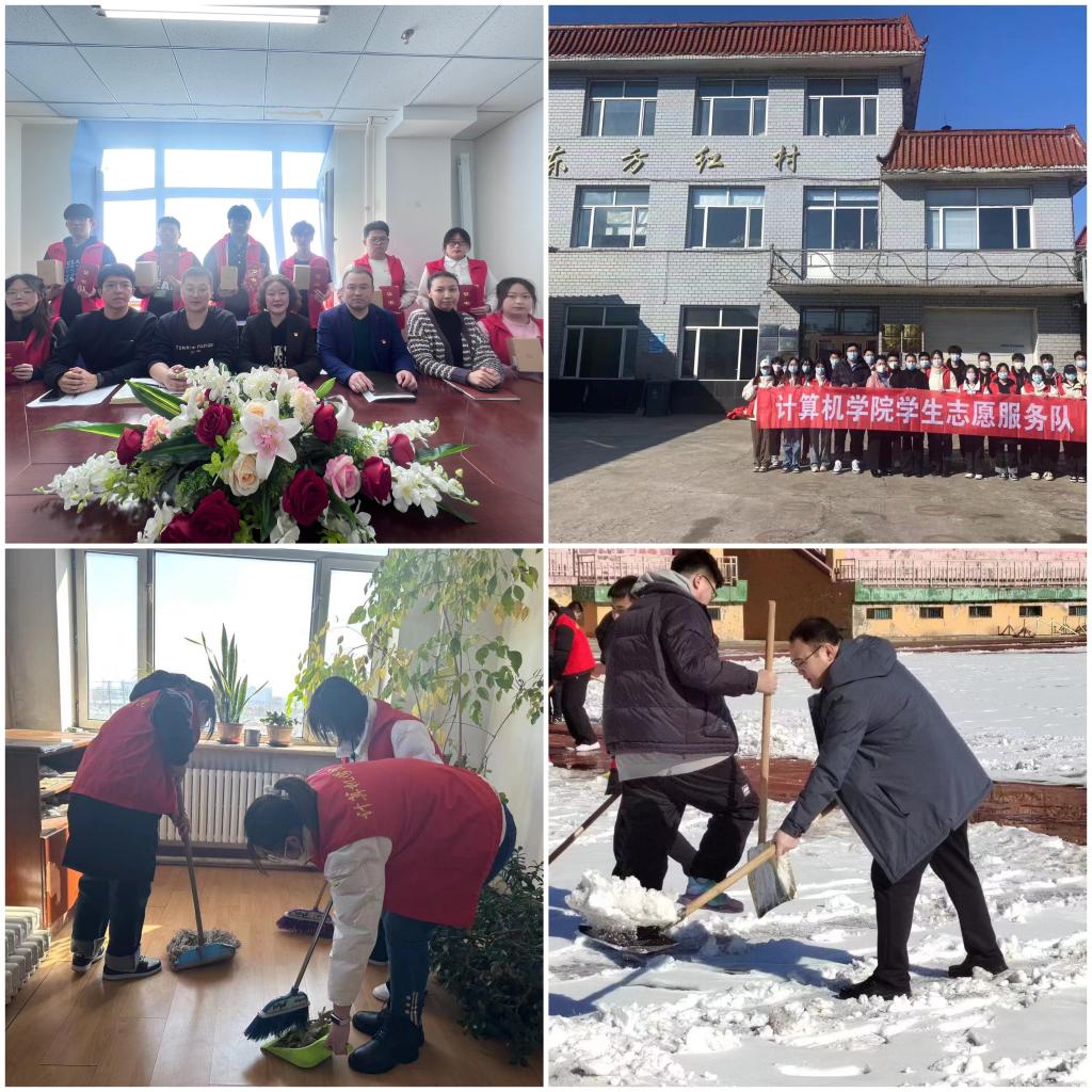 “绿色教育,”深入乡村社区。3月3日中午,学院团委带领主要团学骨干组成“计算机学院学生志愿服务队”前往松北区东方红村村委会,结合专业特点为村委会工作人员进行电脑系统安装、软件更新升级、电脑清理等服务,清扫村委会卫生,志愿服务活动结束后,大家在村委会会议室重温了入团誓词,学习了“七一勋章”获得者崔道植的光荣事迹,同学们纷纷表示作为新时代的大学生要将雷锋精神代代传承下去。