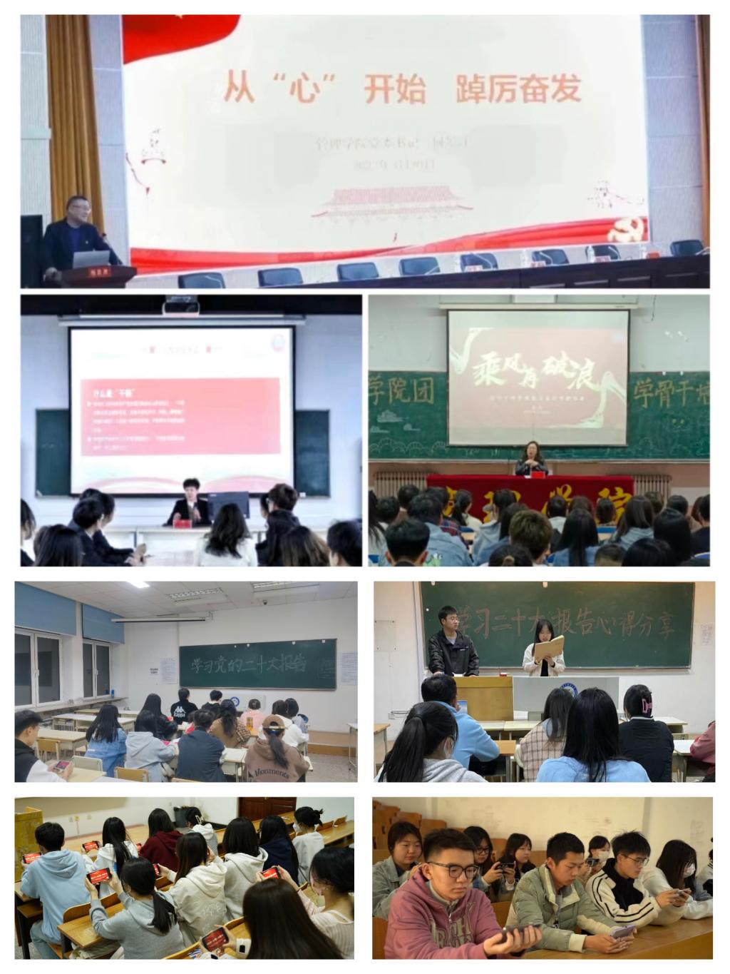 理论学习,前行道路有方向。3月20日,管理学院在信报大厅举行了开班式,学院党委书记何景洋出席了开班式并做了题为《从心出发,踔厉奋发》的第一讲,党委副书记徐海英与各位辅导员老师对团学骨干进行了7天的集中授课,通过各位老师的集中授课以及小组分散学习,团学干部们对于二十大精神、新党章以及习近平新时代中国特色社会主义思想有了进一步的认识,纷纷表示未来会继续勤于学习,善于思考,精于总结,进一步提高自己的政治判断力、领悟力和执行力,做腹中有“墨”,肩上有“担”,心中有“情”的优秀团学骨干。
