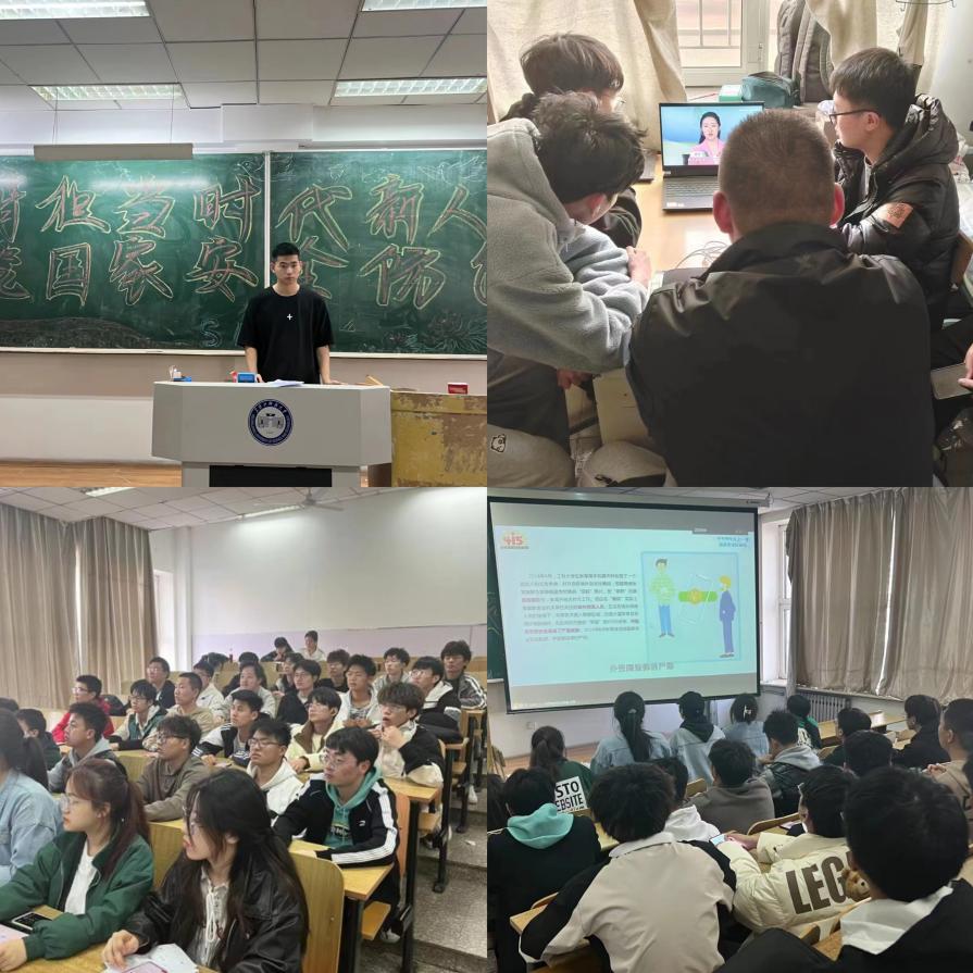 一是学院4月14日组织全体学生通过中国大学生在线积极参加“千万师生同上一堂国家安全教育课”,切实增强广大学生维护国家安全的意识和能力,观看过后学生们热议交流此次学习心得,纷纷表示,将从个人实际出发,为筑牢国家安全防线贡献青春力量;二是4月13日-4月17日,以党支部为载体,充分利用“三会一课”、主题党(团)日、主题班会等形式,开展全员大学习,形成国家安全教育的良好局面,打好国家安全法律法规、反邪教知识宣传教育组合拳;三是针对消防安全、实验室安全、宿舍安全、人身安全、心理健康等易发多发隐患问题,组织安全大排查整治,全面排查学院学生存在的各类安全隐患,及时查补漏洞,消除隐患。