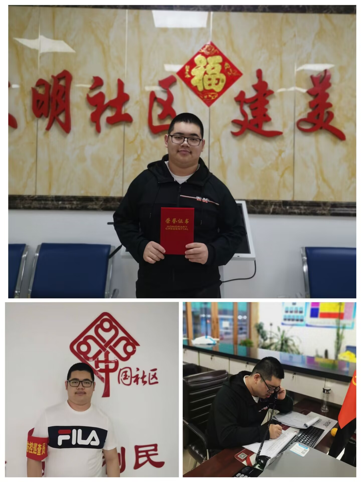 大学四年的生活,让刘博文感受到了大家的温暖和奉献,也是第一次感受到融入集体独立生活的乐趣,锻炼了独立能力、养成了阳光心态、造就了乐于助人的高尚品格。疫情期间,家人无法入校,每次返校辅导员和志愿者专人对接,承担起照料学生生活起居的重任,帮助学生整理床铺,协调核酸检测人员上门服务,封闭管理期间多方协调沟通保障博文的正常学习生活。刘博文将大家的奉献和付出看在眼里,也通过自己的实际行动去做力所能及的工作帮助更多的人,疫情期间申请成为社区志愿者,协助社区拨打电话、进行排查流调,并被推选为县里“最美志愿者”。