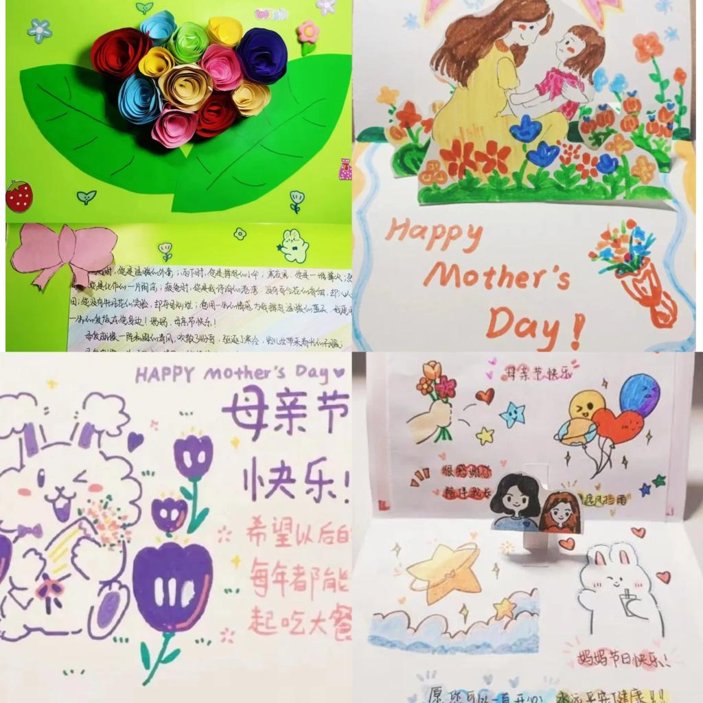 开展“花韵留香,母爱留声”贺卡设计比赛。通过本次活动,同学们运用贺卡的设计与绘制表达对母亲浓厚的爱意以及对母亲的崇敬和感激之情,增强了学生的感恩意识和社会责任感,丰富学生的情感世界,感念对母亲的生育、养育、教育之恩。
