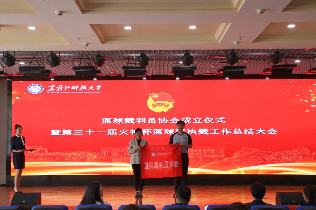 会上,校团委组织部负责人齐曦彤宣读了成立篮球裁判员协会及篮球裁判员协会团支部的决定;校团委社团工作部负责人、学生社团团总支书记王紫麒宣读了篮球裁判员协会会长、副会长,团支部书记、组织委员、宣传委员,指导教师的任职及聘任决定;校团委兼职副书记杨雨淇宣读了优秀裁判员的表彰决定;校团委副书记马紫微为篮球裁判员协会授旗并颁发聘书及任命书,同时为优秀裁判员颁发证书和奖品;篮球裁判员协会会长矿业学院矿加20-2班余立雕作了表态发言;篮球裁判员协会指导教师杨明作了表态发言并总结第三十一届火神杯男子篮球赛执裁工作。