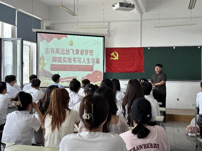 主题党日上,副处级辅导员展跃以“志存高远放飞青春梦想 脚踏实地书写人生华章”为题为全体毕业生党员讲述最后一堂党课,通过“十二个方面画画像”与毕业生党员一同回顾大学四年的奋斗路程,讲授了新时代青年党员该有的担当和情怀,号召全体毕业党员鼓足勇气、心存壮志、着眼当前、聚焦长远,脚踏实地的干好自己的本职工作,争取更大的成绩,真正做到不负韶华、不负青春。