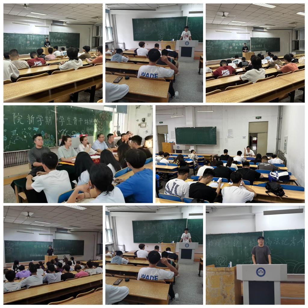 各项活动,见行见效“动起来”。召开新学期学生骨干培训大会,充分发挥各级学生组织作用,增强学生干部的服务意识,为本学期各项工作顺利开展打下坚实基础。开展“青春践行二十大 奋辑扬帆勇向前”主题班会,进一步加强理想信念教育,加强意识形态阵地建设;开展“强化校规校纪,提高法纪素养”主题班会,以班级为单位,全员化、全覆盖组织学习学校系列管理规定和奖助学金评审办法等制度,加强对学生的遵纪守法教育、文明礼仪教育、行为规范教育和养成教育,增强学生“规矩”意识和纪律观念,教育学生做遵纪守法、知行合一的大学生。