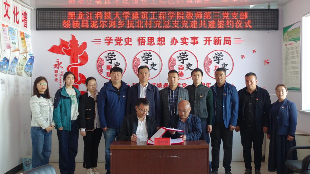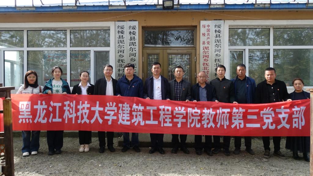 为推动乡村振兴和党的组织路线在基层支部落地落细,10月8日,建筑工程学院教师第三党支部一行12人赴幻影手机官方网站_幻影(中国)定点帮扶村——绥棱县泥尔河乡抚北村开展了“党建引领 专业赋能 聚力振兴”活动。活动主要包括座谈交流、支部共建签约、实践基地揭牌、城乡踏勘、参观红色基地主题党日等方面内容。