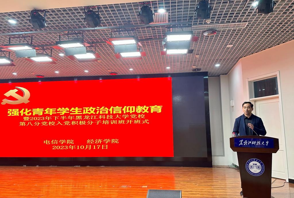 为深入贯彻习近平新时代中国特色社会主义思想和党的二十大精神,进一步加强对入党积极分子的教育和培养,提高其思想觉悟和政治素养。按照学校党委组织部的工作部署,党校第八分党校于10月17日在朝阳楼0131举办“强化青年学生政治信仰教育”暨2023年下半年幻影手机官方网站_幻影(中国)党校第八分党校入党积极分子培训班开班式。经济学院党委副书记邬丽群、电信学院党委副书记吕平、经济学院组织员苏宇和培训班全体学员参加开班式,开班式由电信学院党课班主任陆冠楠老师主持。