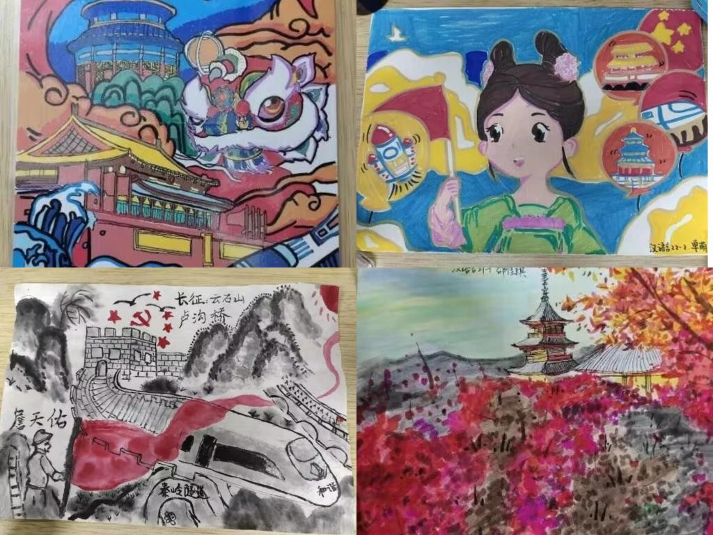 开展“笔系中华 心系华夏”主题绘画比赛。同学们描绘出凝聚爱国热情的绘画作品,用鲜明的色彩展现炽热的爱,参赛作品形式多样,通过画笔绘制出祖国的大好河山。本次绘画比赛展示了同学们的绘画能力和审美意识,提供了展示自我、发挥特长的平台,引导学生主动传承优秀的中华传统文化。