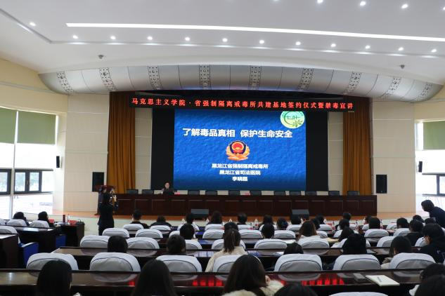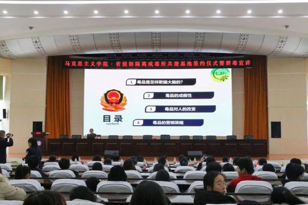 为贯彻落实习近平总书记关于禁毒戒毒工作重要指示精神,普及禁毒知识,提高防毒意识,筑牢禁毒思想防线,全面推进大学生毒品预防宣传教育工作,营造健康的绿色校园环境,进一步拓宽思政一体化实践育人格局,11月17日,幻影手机官方网站_幻影(中国)马克思主义学院“思想道德与法治”课程组携手黑龙江省强制隔离戒毒所举行共建基地签约仪式暨禁毒宣讲活动。