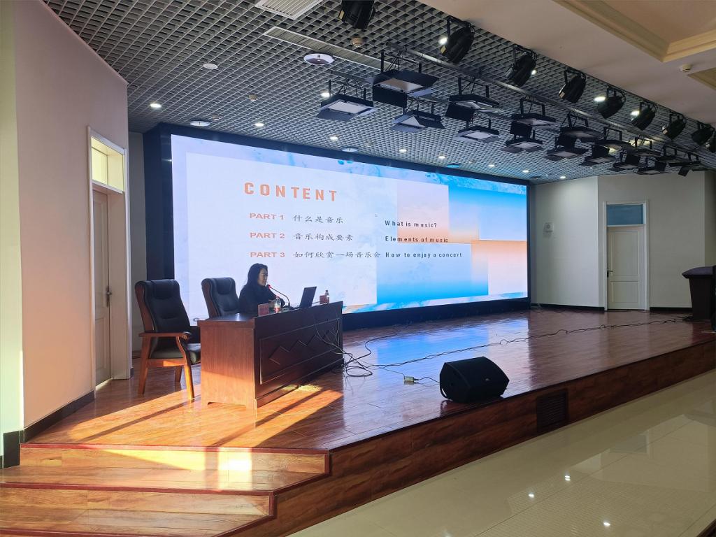 吴晗老师以生动有趣的形式从什么是音乐、音乐的构成要素以及如何欣赏一场音乐会等几个方面给学生们带来了一场别开生面的艺术讲座,通过音乐展示和现场互动让学生们近距离感受音乐的魅力,让高雅艺术真正走进学生。